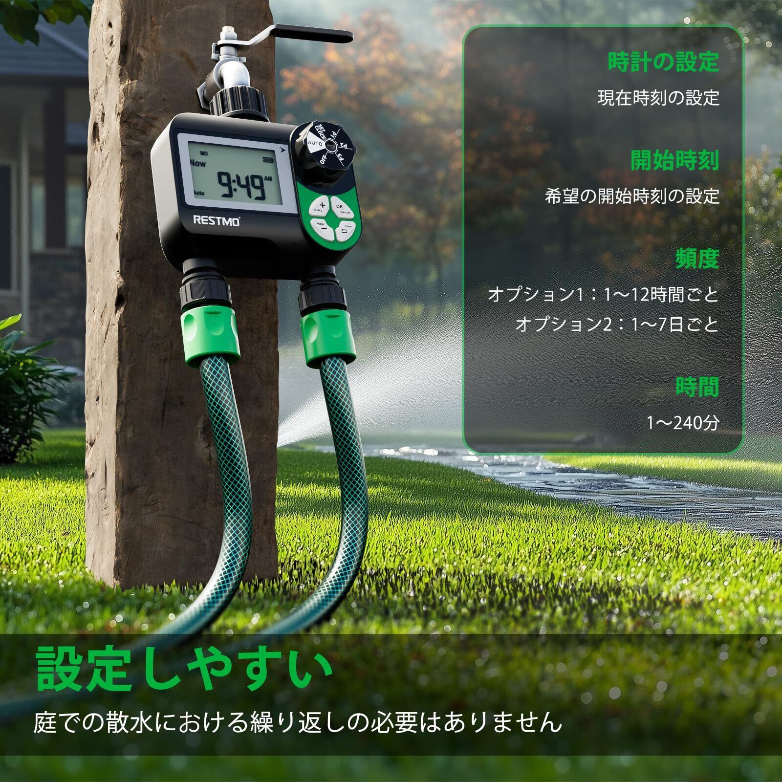 Restmo ウォータータイマー 3つの個別プログラム付き ガーデンホース用 7日間プログラム可能なスプリンクラータイマー 自動制御/手動/雨天遅延機能付き 点滴灌漑 芝生と庭の散水システム 2ゾーン