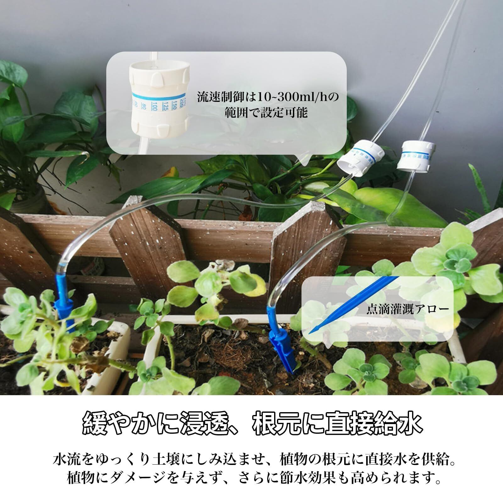 【水やり楽だぞう】滴下速度は毎時 10-300 ミリリットルの範囲で自由に調節可能で、多肉植物にはスロードロップモードが適しており、大型の観葉植物にはクイックドロップモードを選択できます。ノブ式調節設計により、操作が直感的で便利で、植物の生長リズムに簡単に適合させることができます。