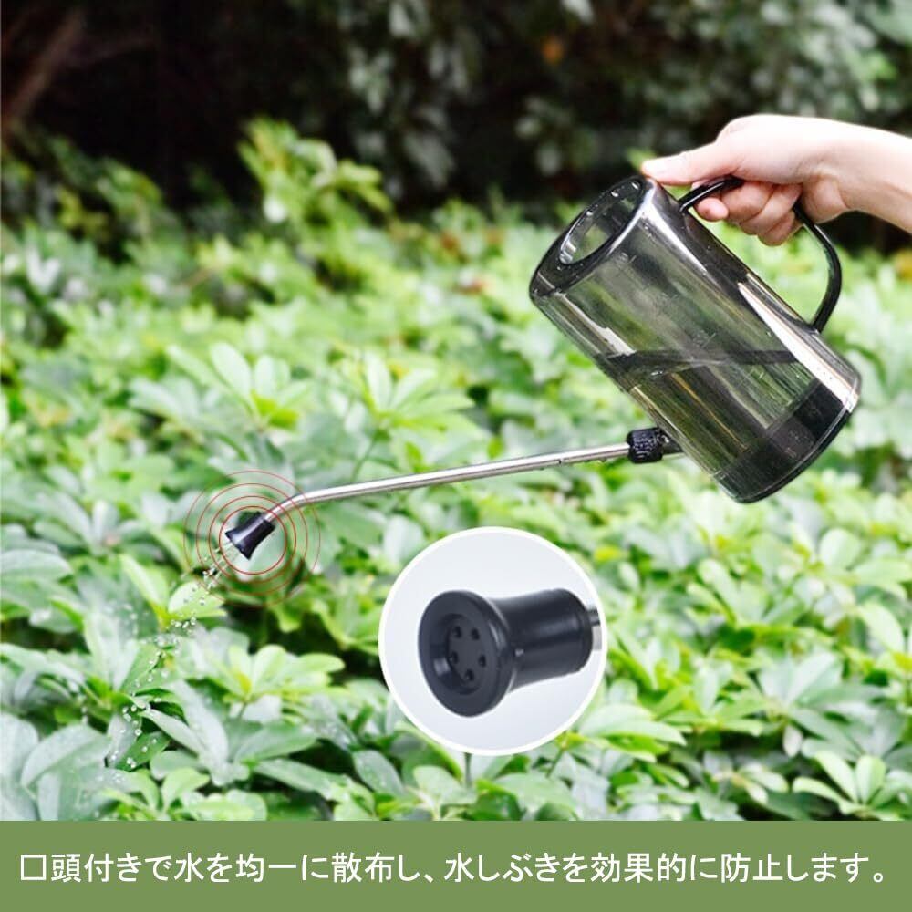 ステンレスの長いパイプは耐久性と防錆性を確保し、高品質な透明な素材で作られたジョウロは高い透明度と耐破損性を持ち、長期間使用しても安心です。