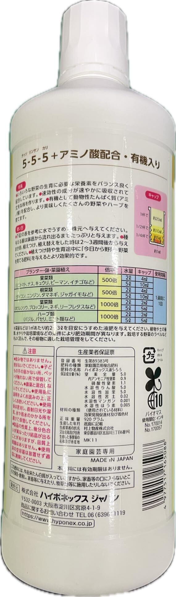 有機として動物性たんぱく質(アミノ酸)を配合し、より美味しくたくさんの野菜やハーブを育てます