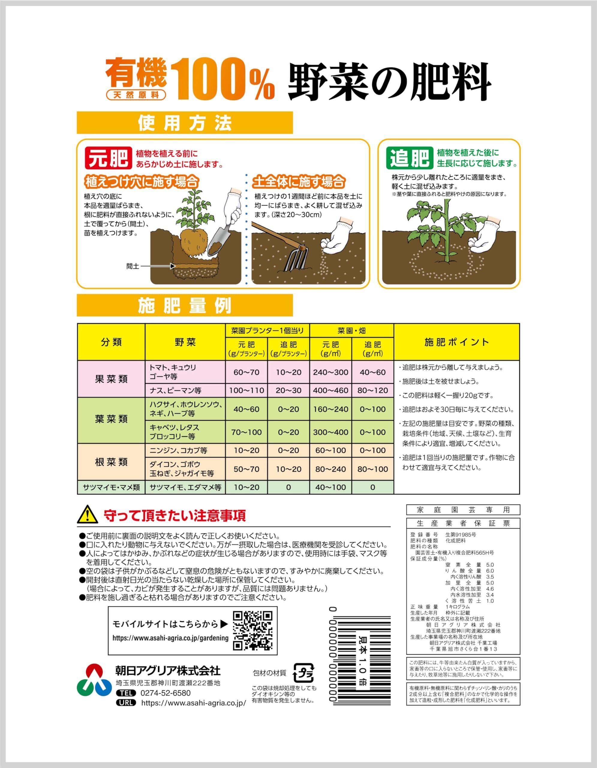 朝日アグリア 有機 骨粉入り有機・天然原料由来100%野菜の肥料 1kg 化学肥料不使用のあやゆる野菜に使える
