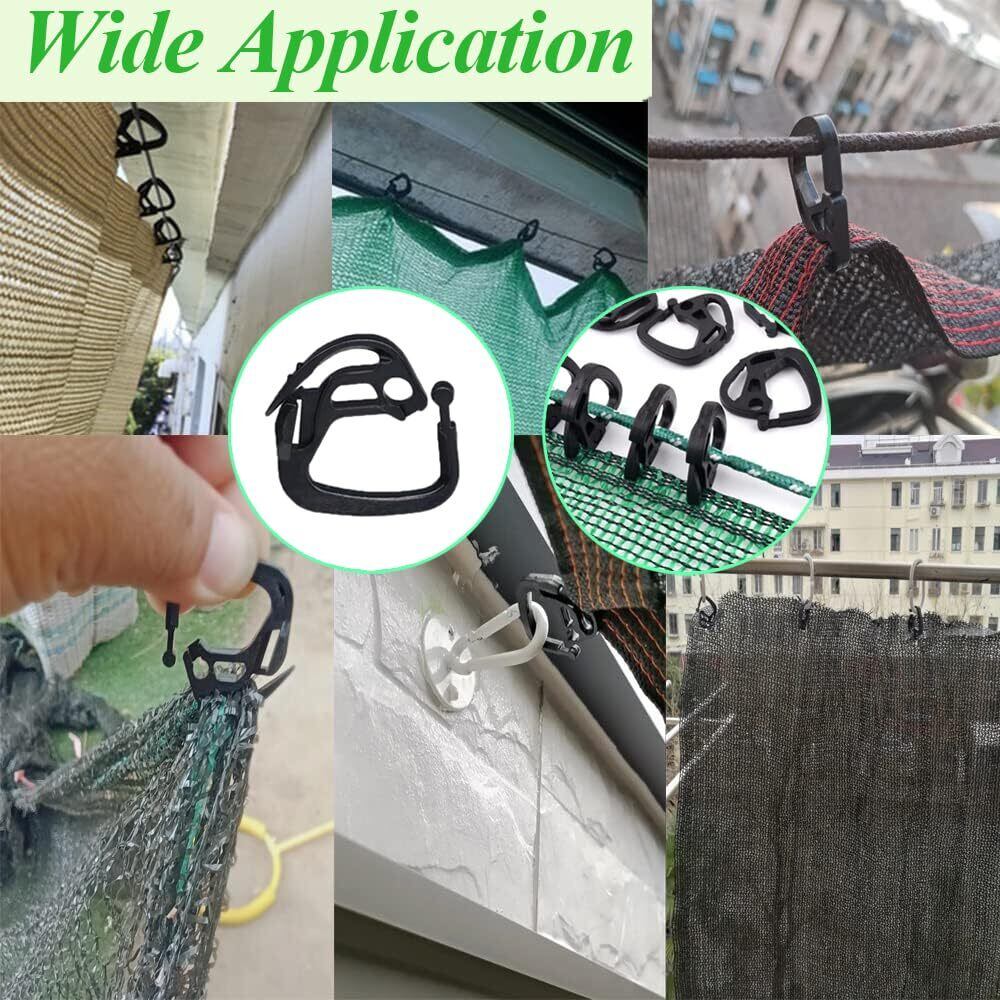 【多用途シェード クロスクリップ】園芸クリップは広く使用されています。日除け帆、防鳥ネット、ガーデンネット、農業用ネットなど、様々なメッシュ生地や日除けネットに適しており、この日除け布プラスチッククリップは、庭で涼しく安全な環境を作りながら、植物を日焼けや鳥から守るのに役立ちます。庭やさまざまな植物をしっかりと保護します。