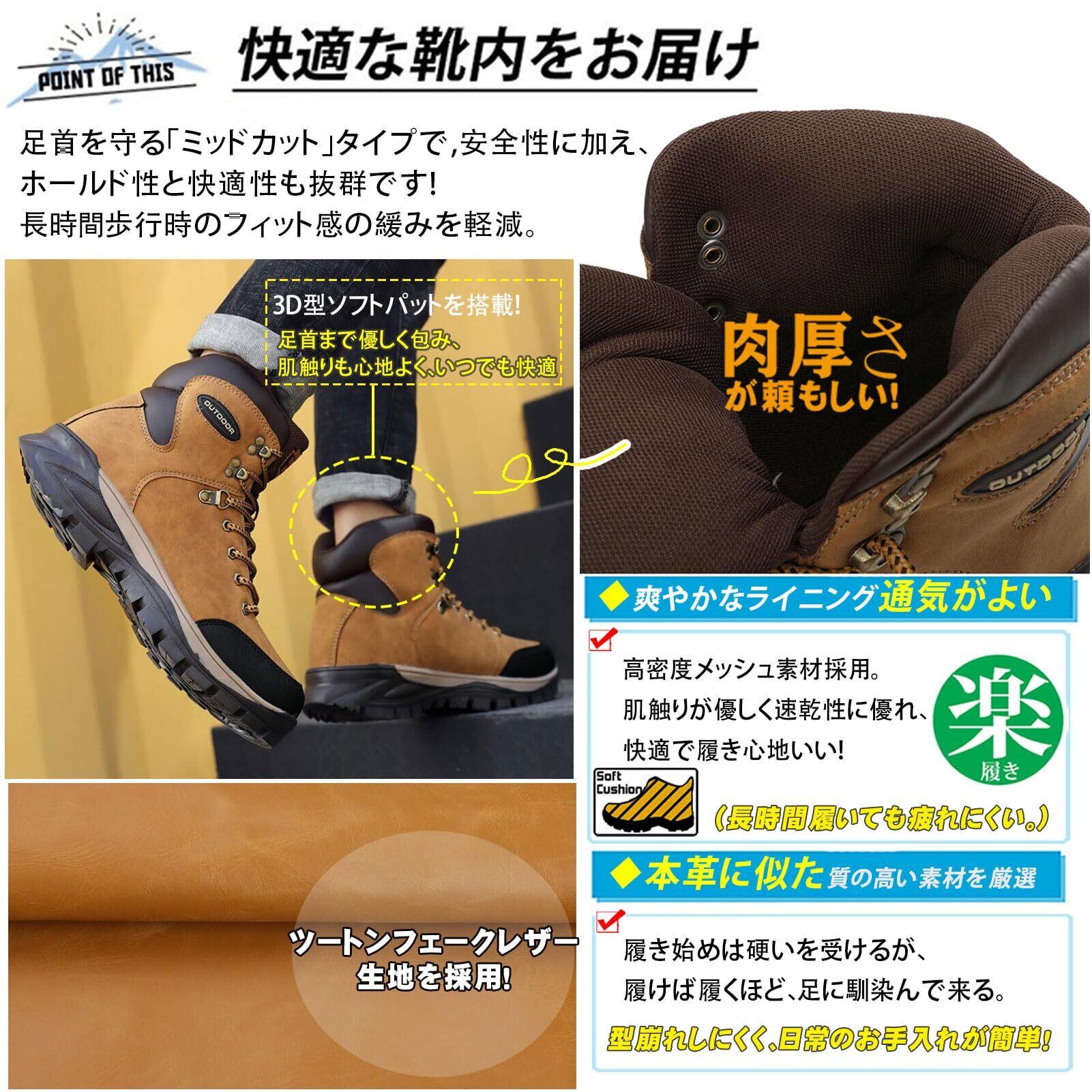 【つま先保護◎甲高+幅広さんには最適した3E&幅広設計】つま先保護できるがっちりとしたアッパーデザインが、ウォーキング、旅行、トレッキングなど様々なアウトドア活動には相応しい。幅広でゆったりめ3Eデザインで、甲が高い方や幅広い方でも窮屈なしで履ける。