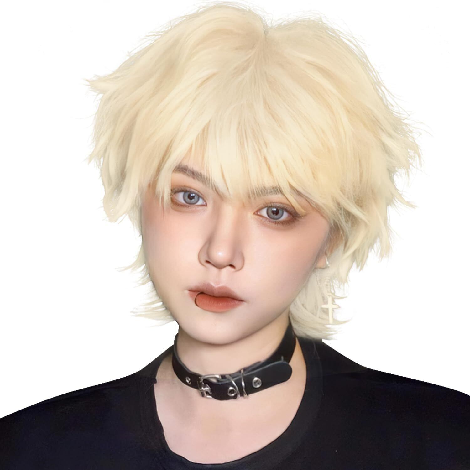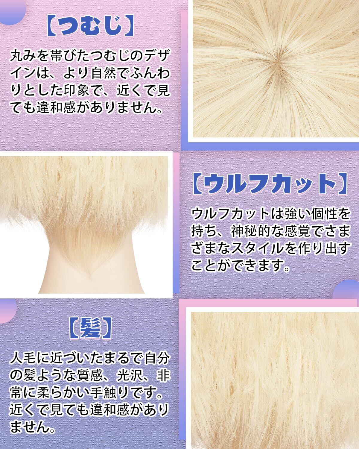 Sofeiyan ウィッグ メンズ 男装 ショート ウルフ フルウィッグ 男装ウィッグ ウルフカット かつら 普段使い 自然 耐熱 日常 原宿 地雷 人気 小顔ウィッグ コスプレ cosplay wig 男女兼用 ウィッグネット付(ライト亜麻ゴールド) | Bloomia