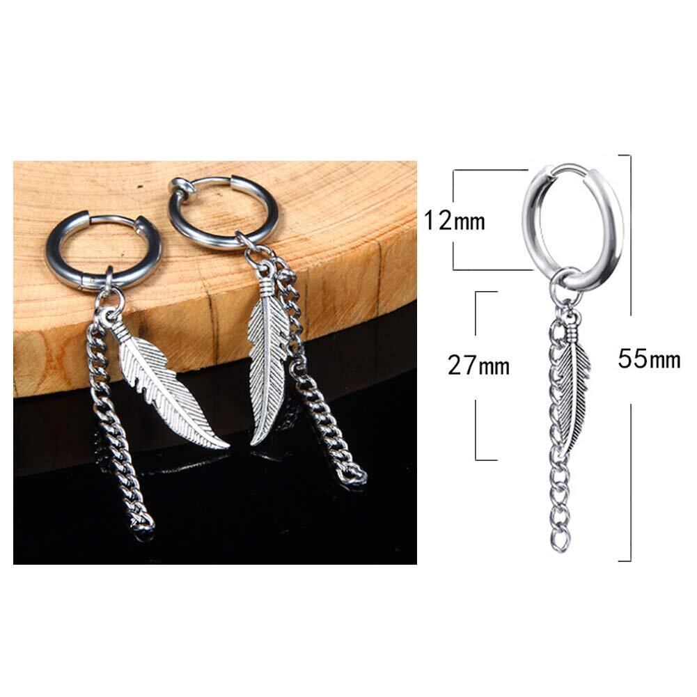 Yoloo メンズ ピアス 防アレルギー対策 両耳 2個セット 羽 フェザー フープピアス 揺れる ウイング チェーン イヤリング 人気 スタッド ピアスYL-53 (A)