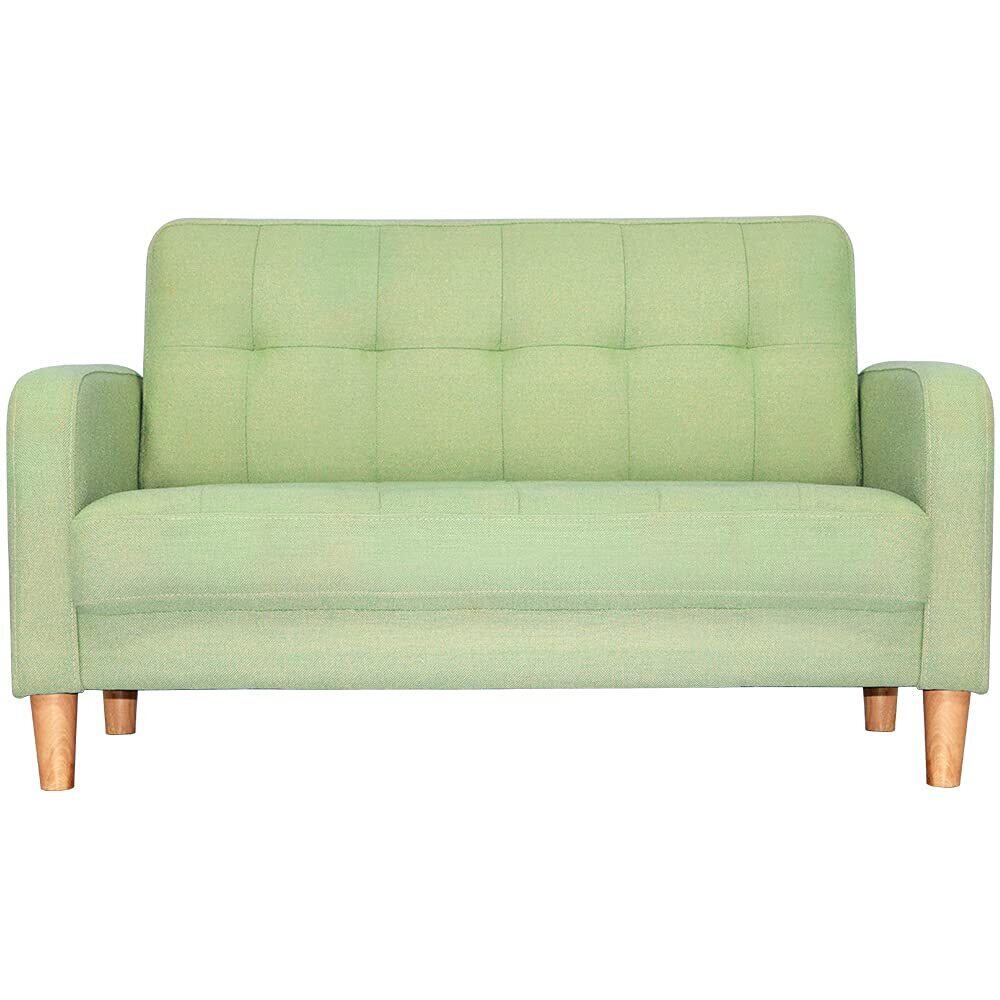 オーエスジェイ(OSJ) ソファー 2人掛け 肘付き 天然木脚 幅約110cm 簡単組み立て 2WAY ファブリック おしゃれ 新生活 北欧スタイル ソファベッド グリーン 62*113*38 | Bloomia