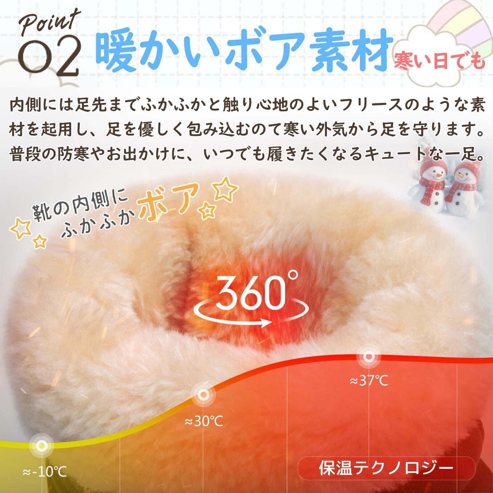 【抜群の防寒性】 保温性に優れたボア素材を使用しており、雪や冷たい風から足をしっかりと守ります。寒い冬の日でも、子供たちが快適に遊ぶことができる暖かさを提供します。