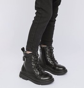 スタイリッシュなレースアップのキッズ ショートブーツです。シンプルなデザインの中にもカジュアルさとシックさを合わせ持ったブラックのヴィンテージ仕様のデザインなので、気軽に履いてオシャレを楽しむことが出来ます。