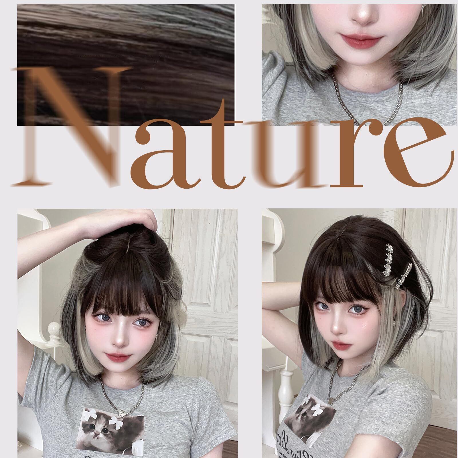 FESHFEN ウィッグ ショート ボブ フルウィッグ レディーズ ストレート 女性用 女装 自然 かつら ショートwig おしゃれ ぱっつん前髪 小顔 ファション ナチュラル 普段使い 日常 耐熱 ネット/櫛付き 黒茶&ミルキーイエロー | Bloomia