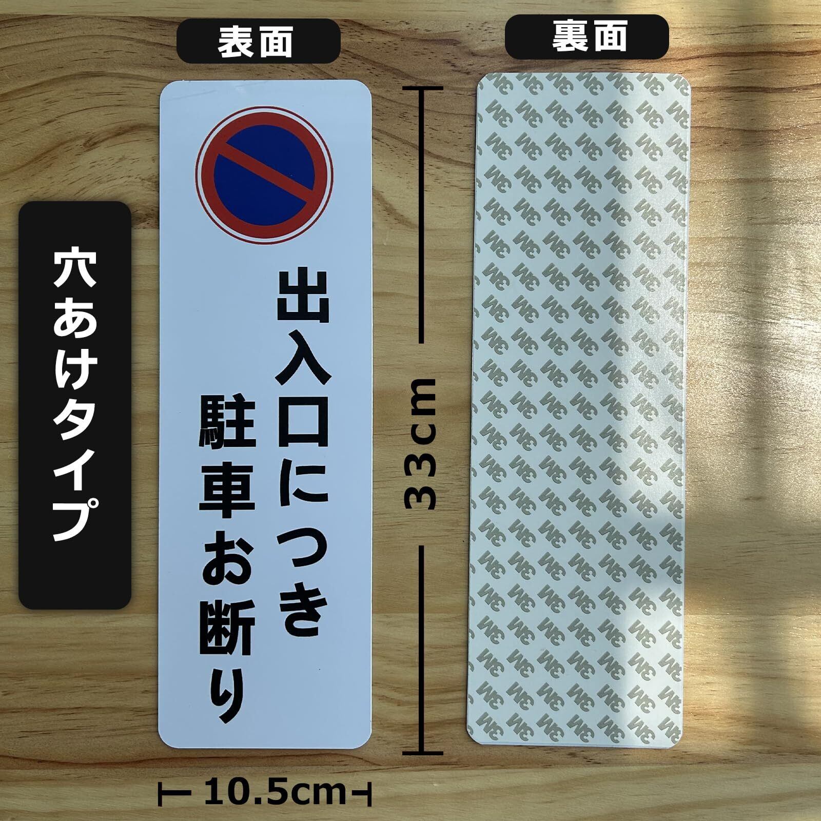 出入口につき 駐車お断り【両面テープタイプ】 注意看板 警告サイン 安全標識 軽量 1.5mm PVC製 33cm×10.5cm 防水 屋外2枚セット タテ型