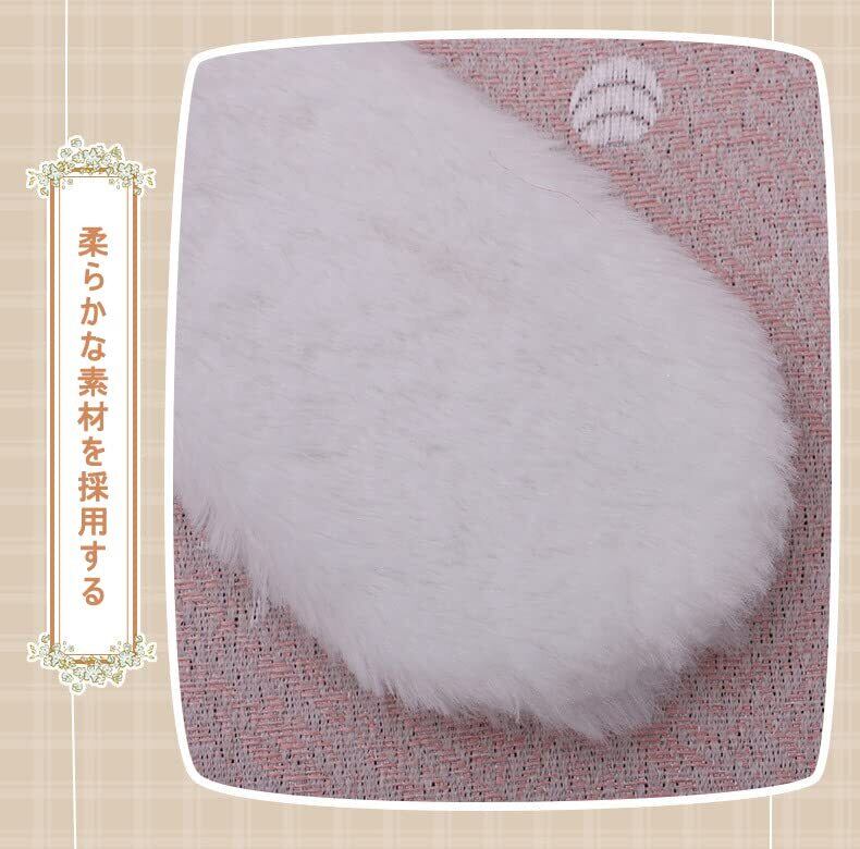 もこもこで手触りがとてもいい感じ、リボンと合わせてとても可愛い雰囲気を演出します。たれみみのうさ耳はメイド服やアリスに合わせても可愛い。