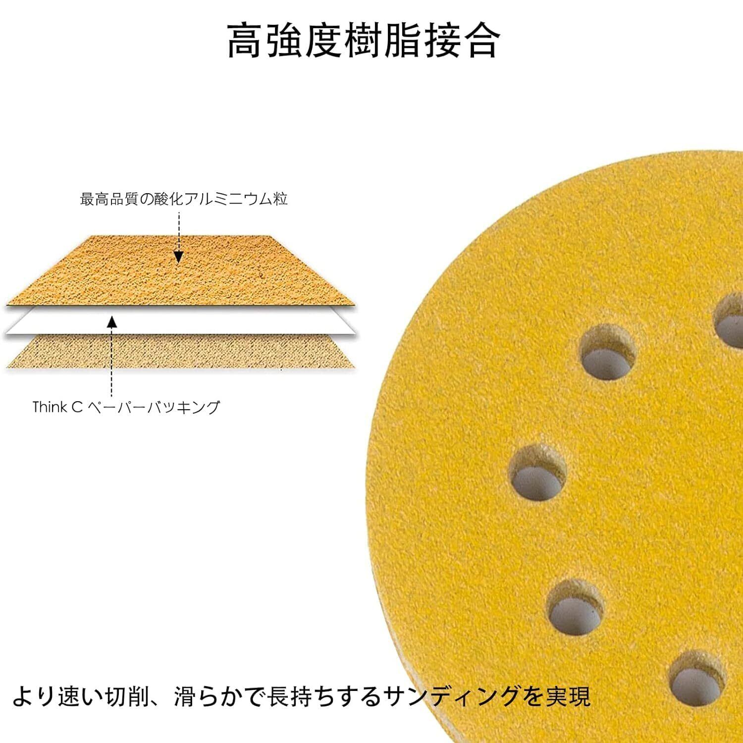 サンディングディスク 高速のあるサンディング、優れた切断力を提供し、作業時間を削減し。サンドペーパー電動は耐久性があり、耐用年数が長い。紙やすりサンドペーパーの裏面にはサンドペーパーのサイズが印刷されており、識別しやすい。