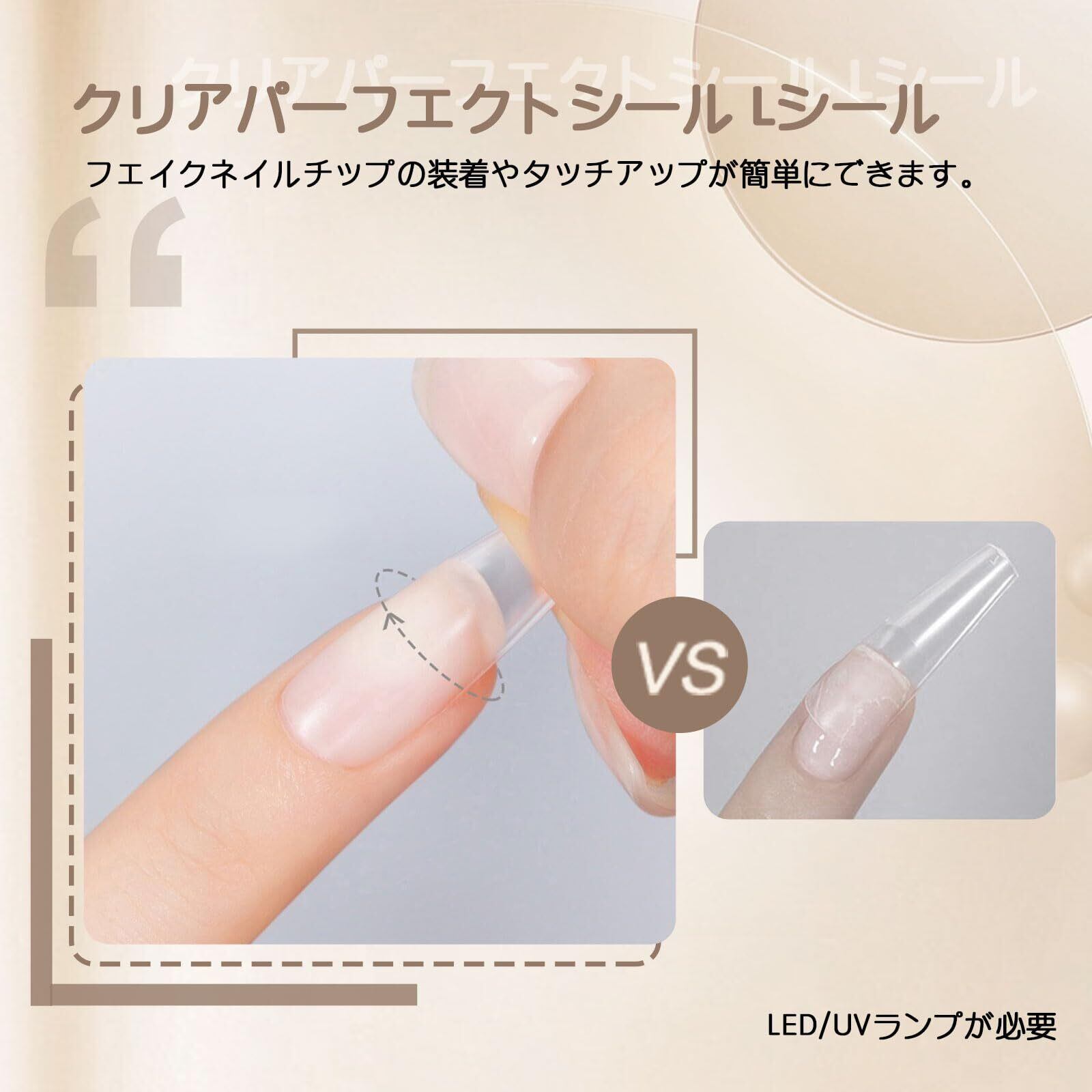 4in1多機能ネイルグルー:プレスオンネイルグルーには超強力で長持ちする特長があります。また、ベースコート&ネイル補強ジェル、パーツ固定専用ジェルとしても使用できます。ネイルランプの下で1-2分間の硬化が必要であり、ジェルが完全に乾いていることを確認してください