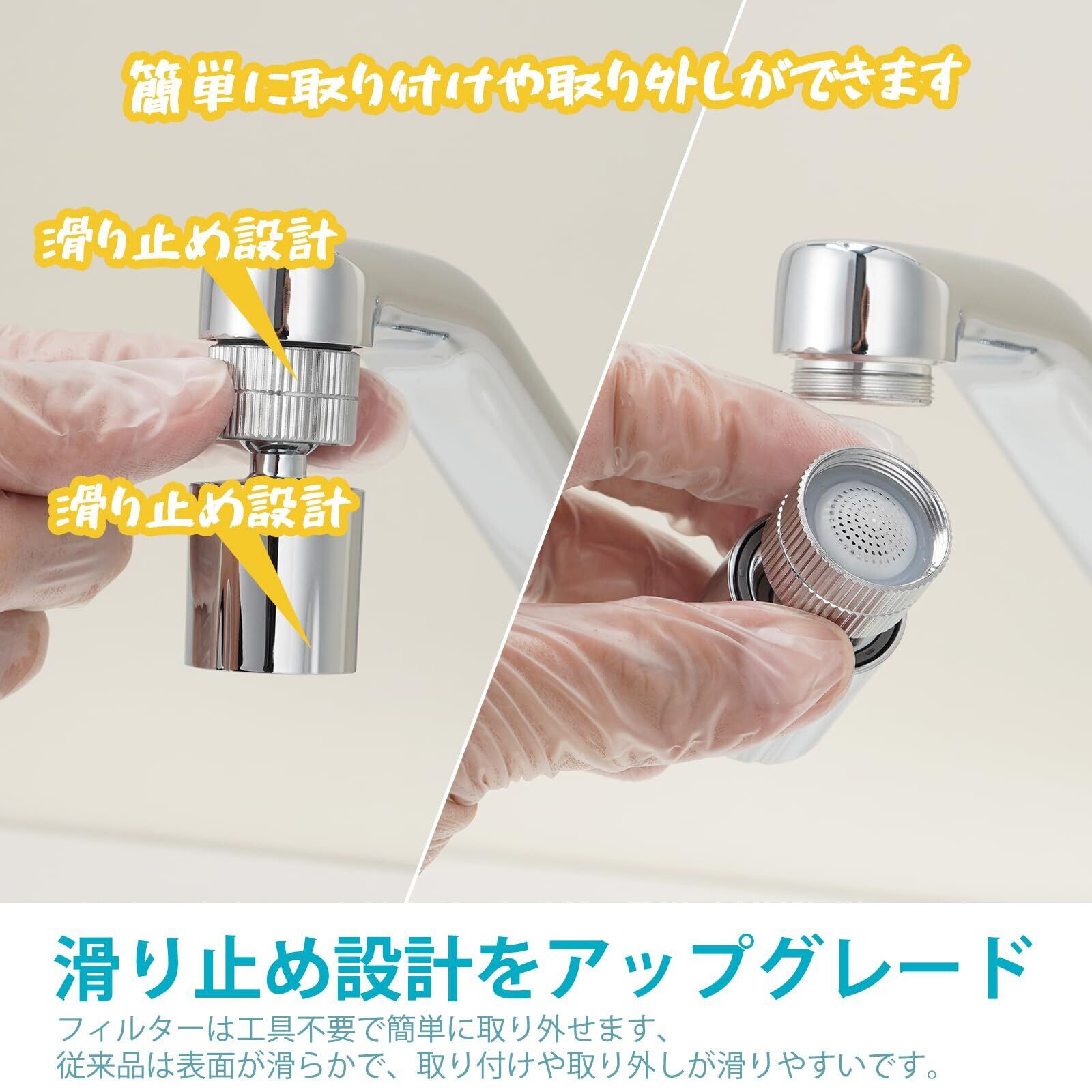 【柔軟な操作性】本商品は60度の首振りと360度の回転が可能で、さまざまな角度から水を出せるため、洗い物や調理の際に非常に便利です。蛇口の位置を気にすることなく、自由に使える設計です!