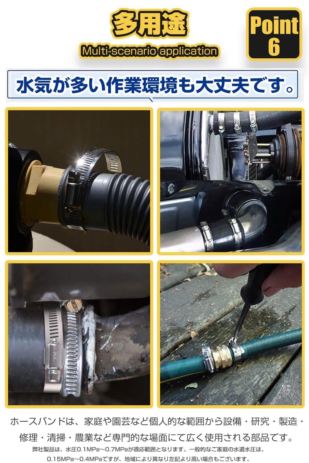 【高耐久性と錆に強く強度】ホースバンドは304ステンレス鋼で作られていて、高耐久性・耐候性に優れています。また、高温、低温ともに耐熱性と強度があります。【材質について】 本商品はビス部分もSUS304です。