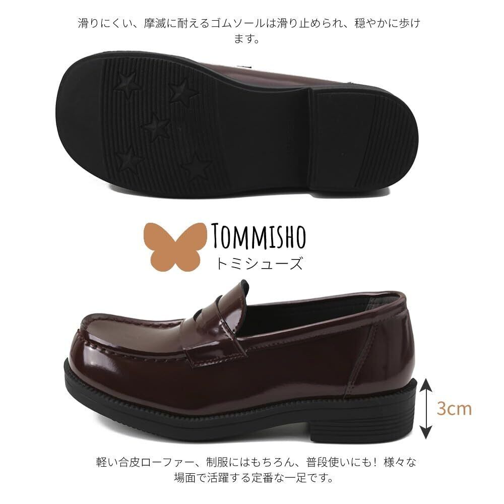 [Tommisho] 女子 学生靴 ローファーレディース スリッポン 防滑 抗菌 防臭 吸水速乾 クッション性インソール 通勤通学 シンプルデザイン トラディショナル 3cmヒール