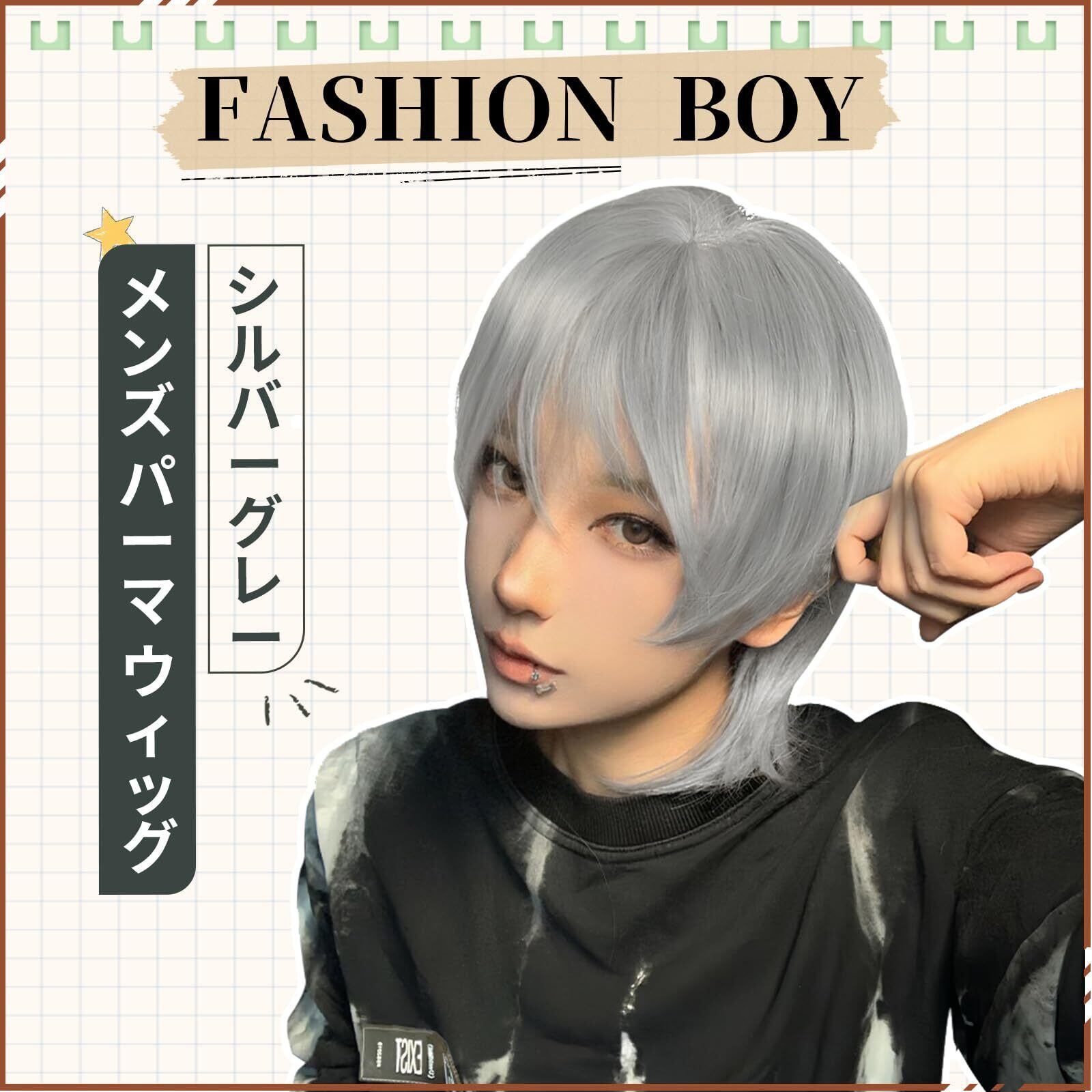 [FORCUTEU] ウィッグ メンズ ロング グレー ウルフ フルウィッグ コスプレ ファッション 耐熱 人気 ネット/櫛付き