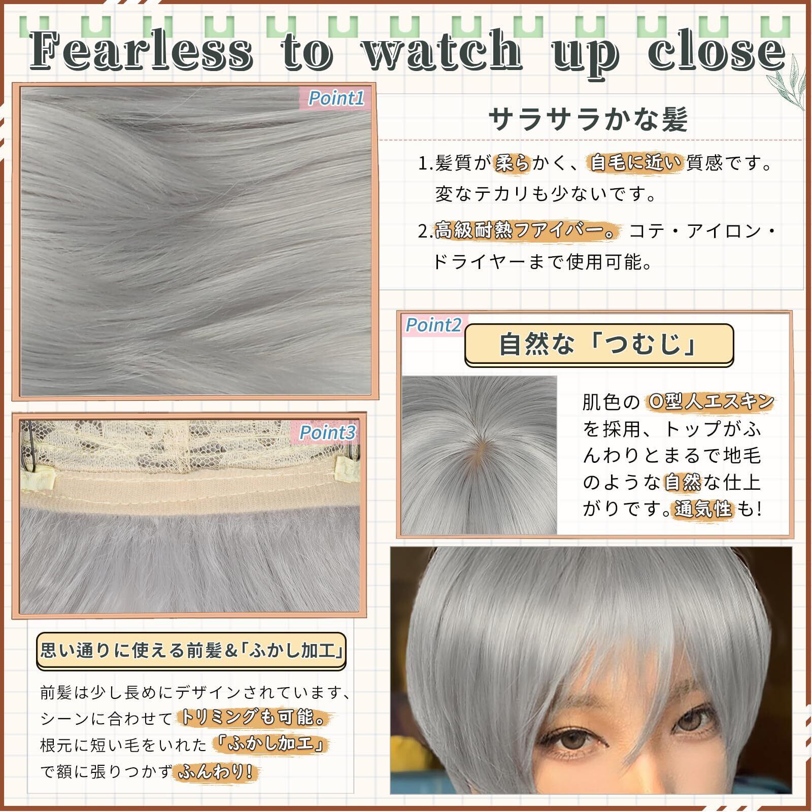 【商品素材】高級耐熱フィバーを採用、ウィッグ特有のテカリ感を抑え、より人毛に近いしっとりとした自然な手触り。手触り・質感・光沢度において自然な髪質を実現します。ドライヤー・アイロン等使用OK。