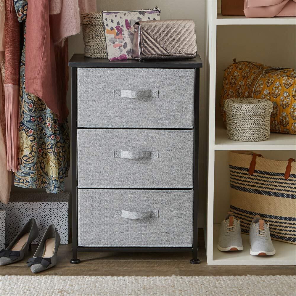 クローゼット、ベッドルーム、プレイルームなどに適した3つの引き出しがあるファブリック収納オーガナイザーです。
