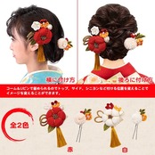 【用途】和風髪飾りです。七五三、成人式の髪飾りは前撮りに最適。アップヘア、サイドアップ、お団子、編み込みなど人気のまとめ髪の補助やアクセントにオススメです。子供さんは卒園式・七五三・お正月・お祝い事・桃の節句などにオススメです。大人の方は結婚式・パーティー・謝恩会・成人式・卒業式など華やかなお席の和装、振袖姿や浴衣のコーディネートにぴったりします。