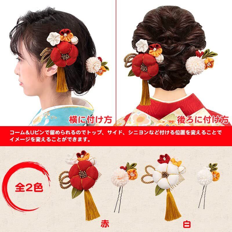 【和装髪飾りセット内容】髪飾2点セット。Uピン&コーム仕様の髪飾りは簡単に取り付けられやすいです。ピンは曲げることも出来ます。綺麗に梱包しますので、新年、誕生日、クリスマス、バレンタインデーギフトとしてお勧めます。浴衣や着物などの和服だけでなく、普段使いにも便利な一本タイプです。