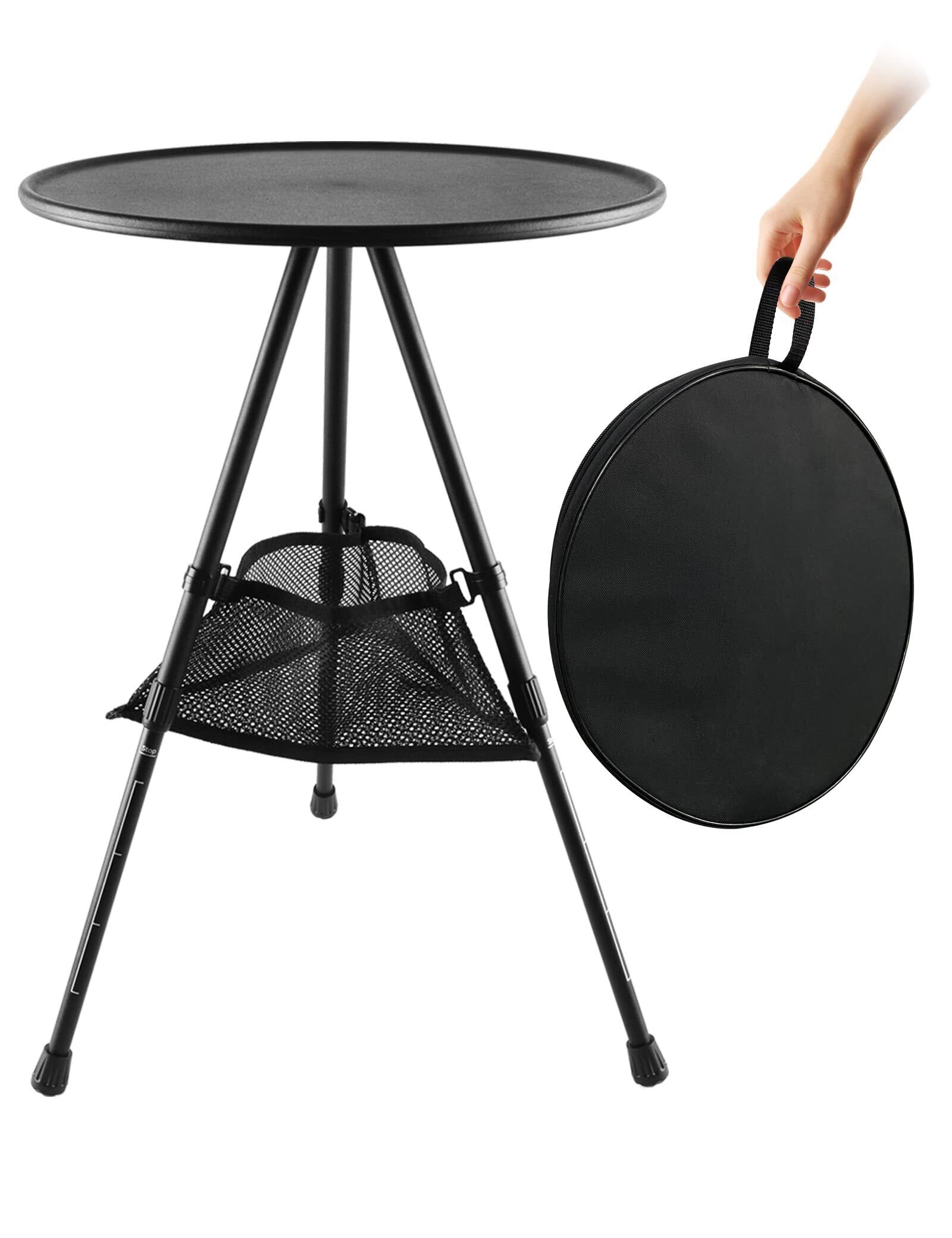 キャンプ テーブル 折り畳み アウトドア テーブル コンパクト ミニテーブル 折りたたみ ベランダ/ガーデン/屋内/屋外 サイドテーブル 高さ調整 釣り/登山/ソロキャンプ 収納バッグ付き 持ち運び (ブラック) | Bloomia
