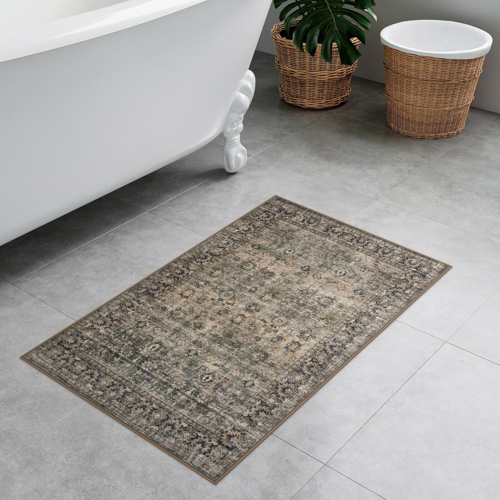 HAOCOO 玄関マット 室内 洗える ペルシャ風 50х80cm オールシーズン適用 小さい ふわふわ バスマット おしゃれ 滑り止め 吸水 ラグマット 防音 屋外 泥落とし アンティーク 長方形 防臭 軽量 ヴィンテージ風 花柄 | Bloomia
