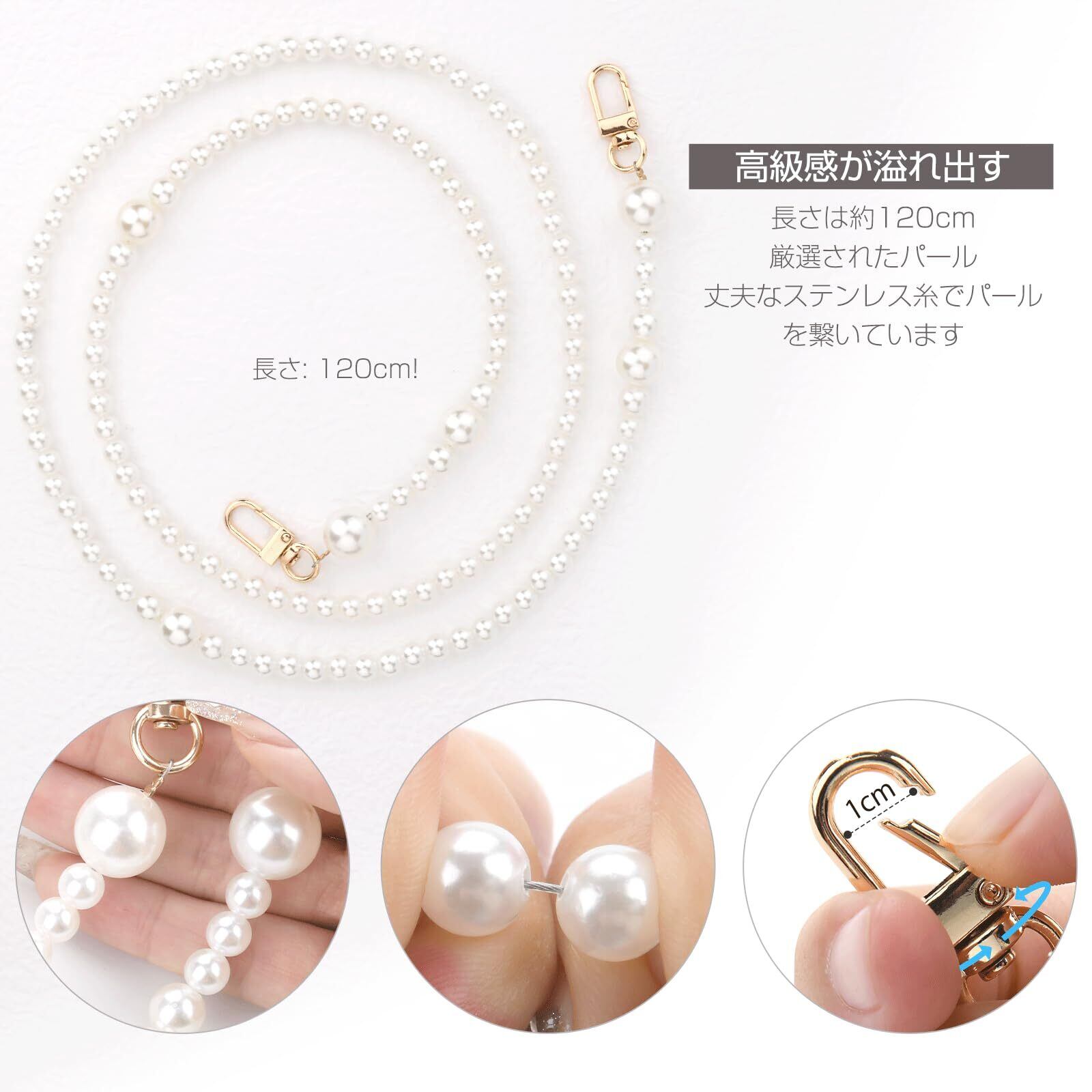 【上質な素材・高級感】:厳選された上質な素材と精密な加工により、高級感のある光沢と滑らかな手触り、合金製の金具により、丈夫で耐久性があり、取り付けも簡単です。 ホワイトパールはあなたのスマホケースやバッグをよりファッショナブルにし、目を引くことができます。