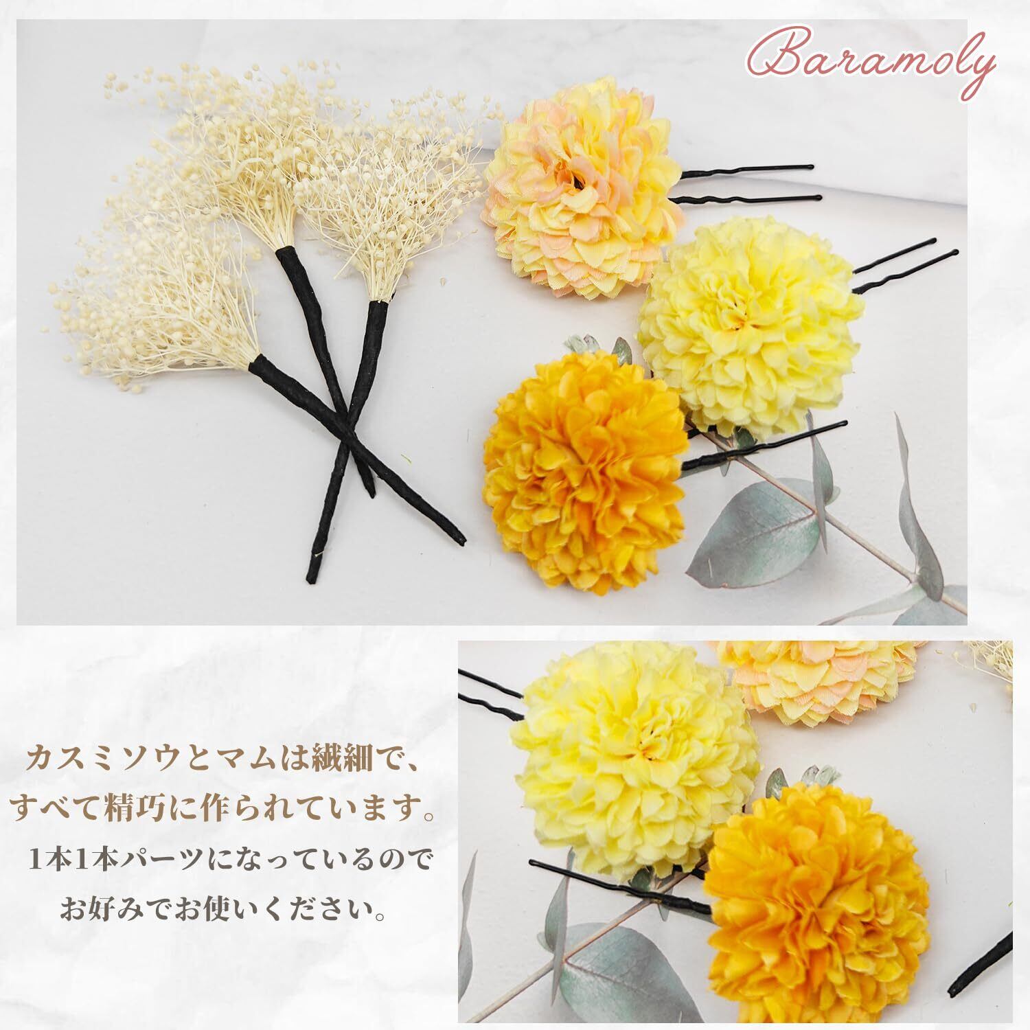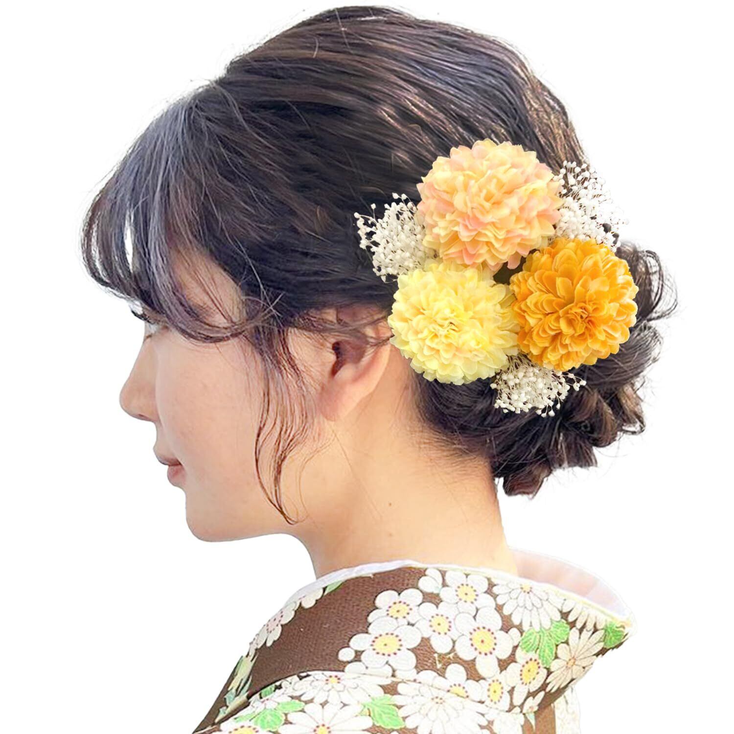 【Baramoly】 髪飾り 成人式 マム プリザーブドフラワー 造花 かすみ草 結婚式 七五三 卒業式 和装 着物 留袖 振袖 浴衣 髪留め ポニーテール