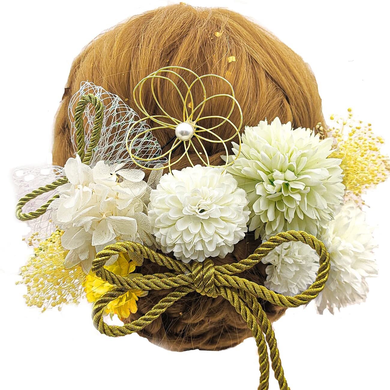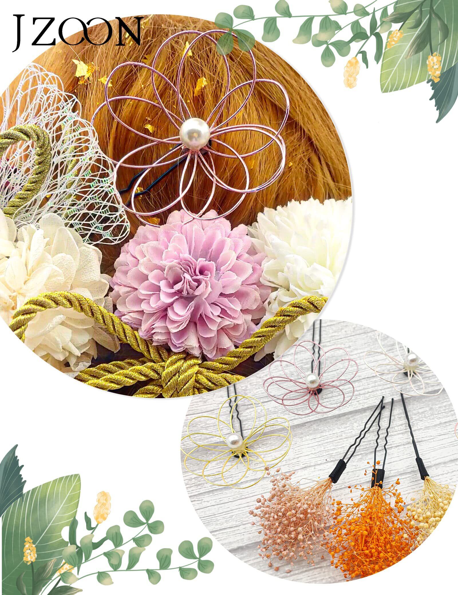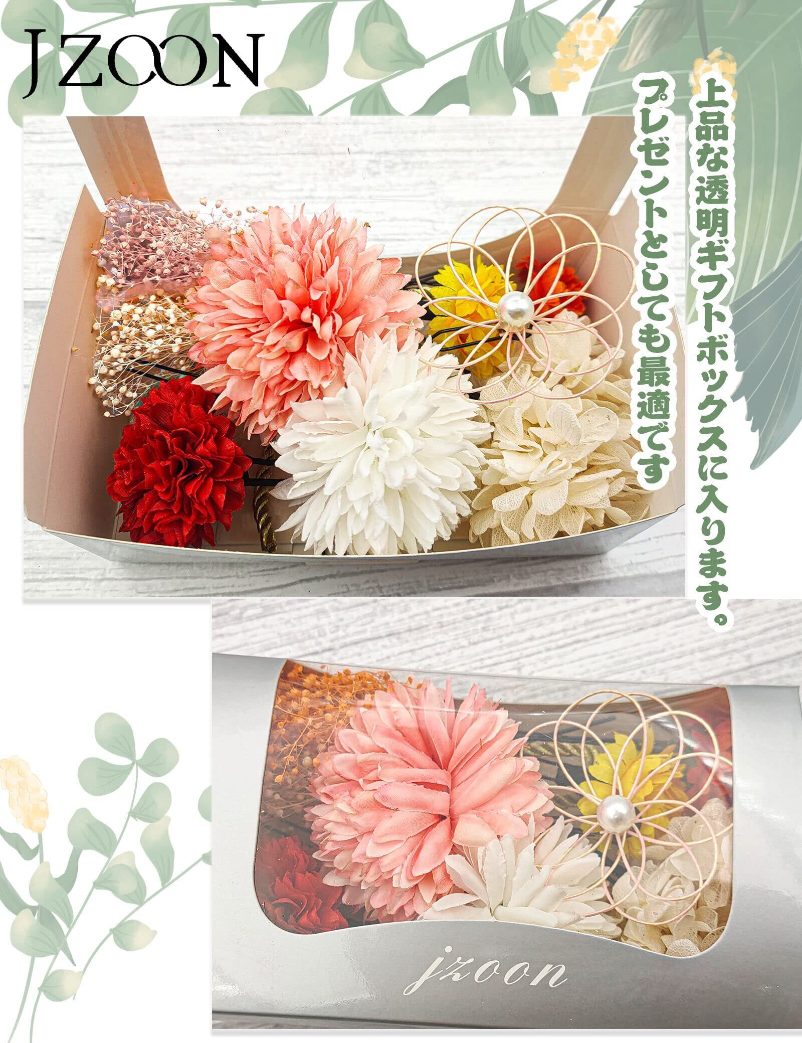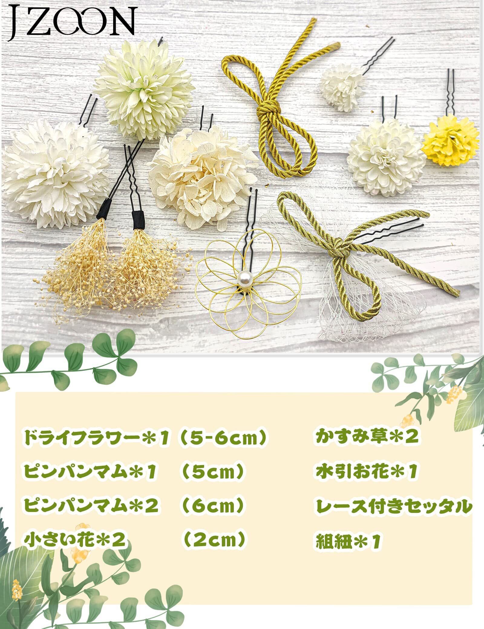 [JZOON] 髪飾り 11点セット 高級造花 ひまわり カスミソウ 水引 お花 紐 ドライフラワー 成人式 七五三 浴衣 袴 着物 振袖 和装 卒業式 結婚式