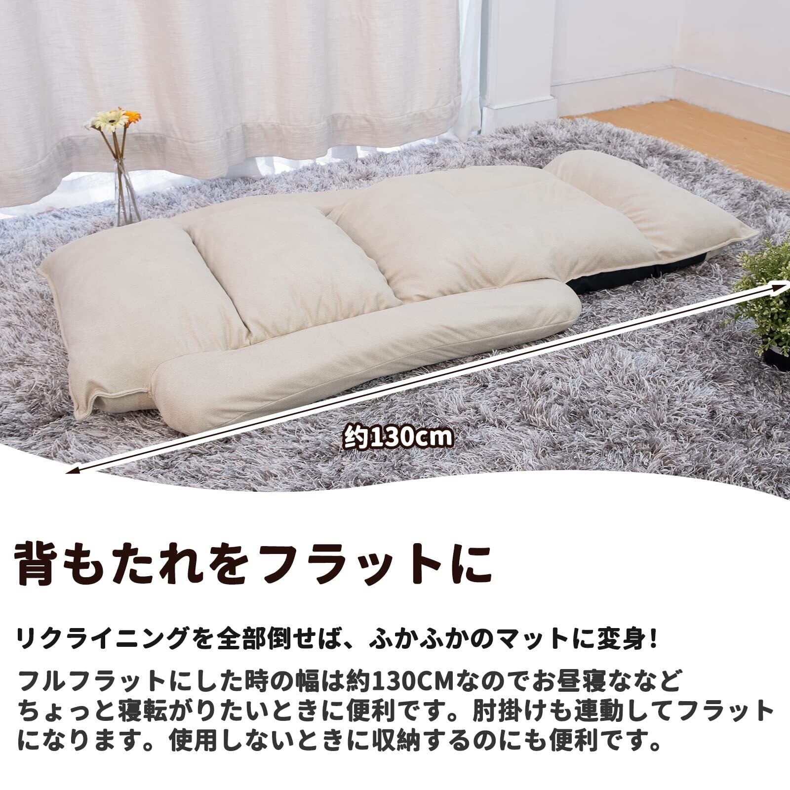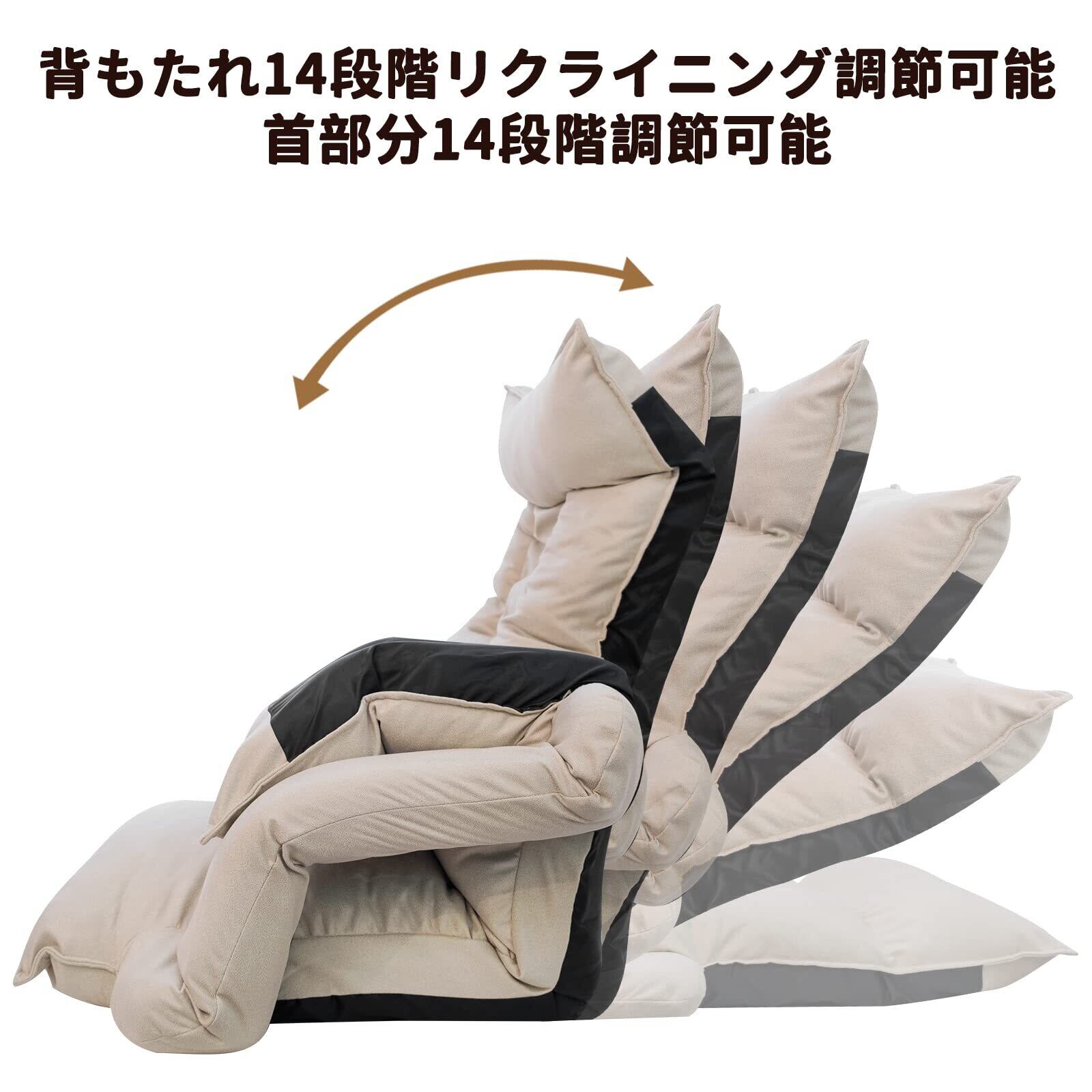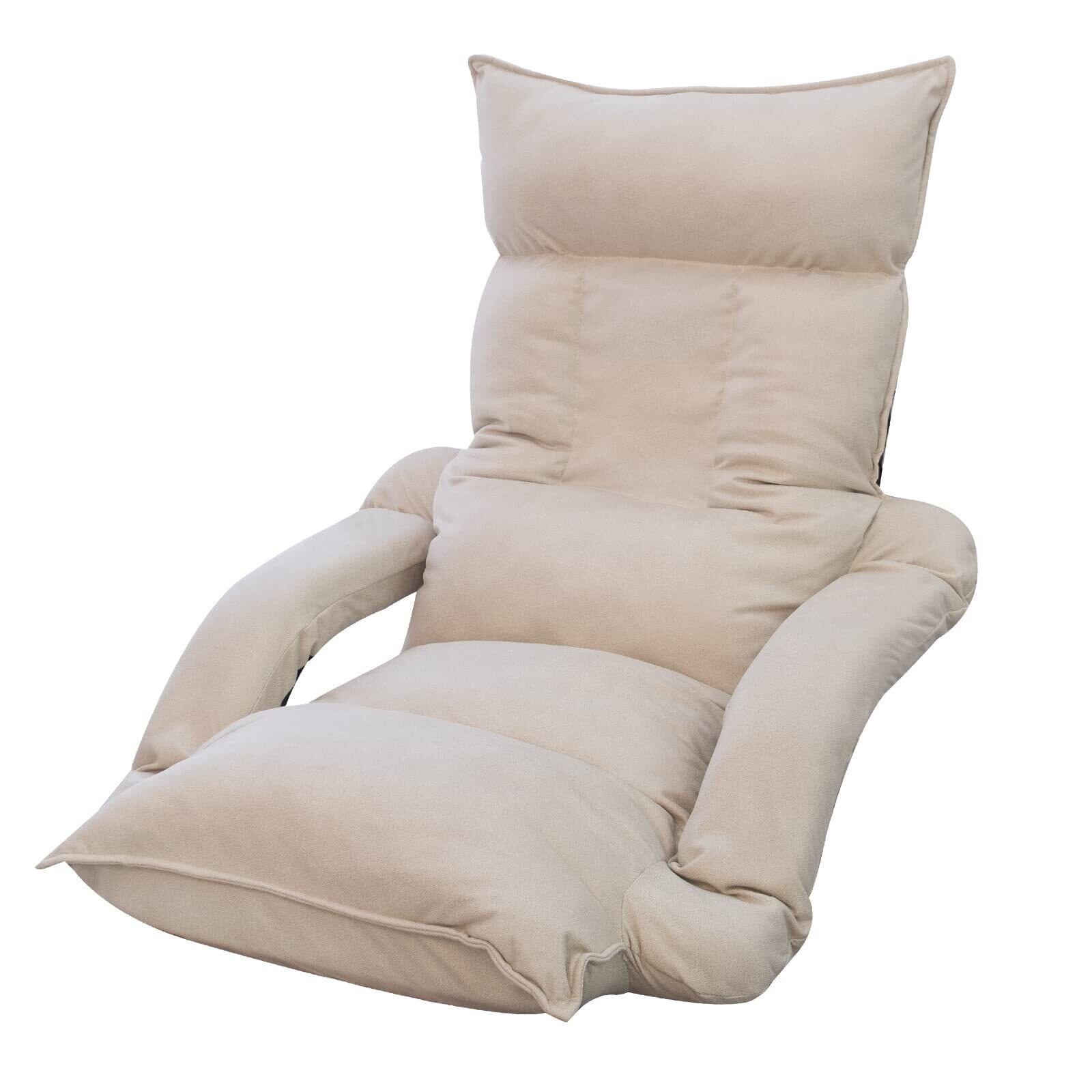 WAVV 座椅子 ひじ掛け付き 低反発 肘掛けリクライニング 1人掛け背もたれ・頭部 14段階調整 フロアチェア ハイバック座椅子 折り畳み可能 (ベージュ)