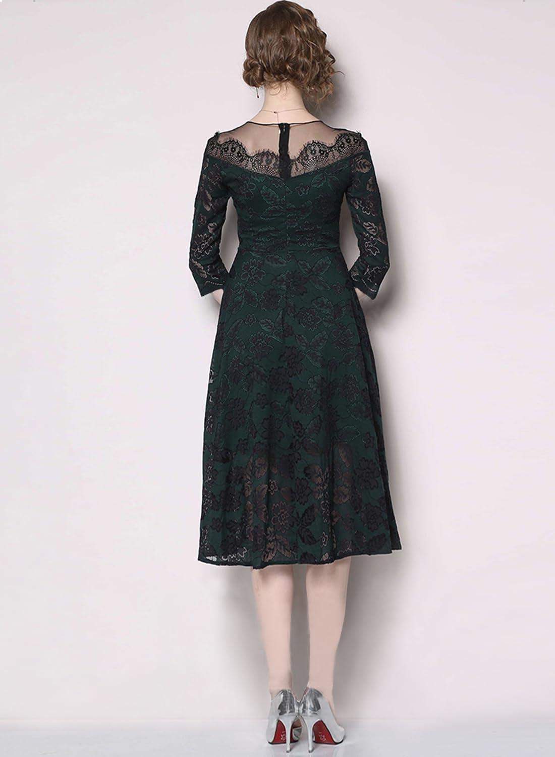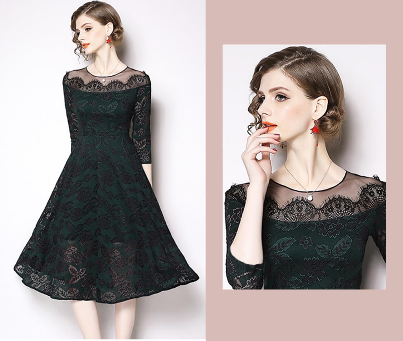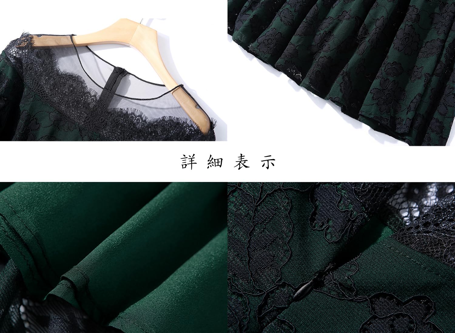 [Bidason] (ビダソン) ドレス 結婚式 ワンピース パーティードレス レディース 総レース 七分袖 ミモレ丈 膝丈 花柄 着痩せ フォーマル 二次会 同窓会 お呼ばれ 披露宴