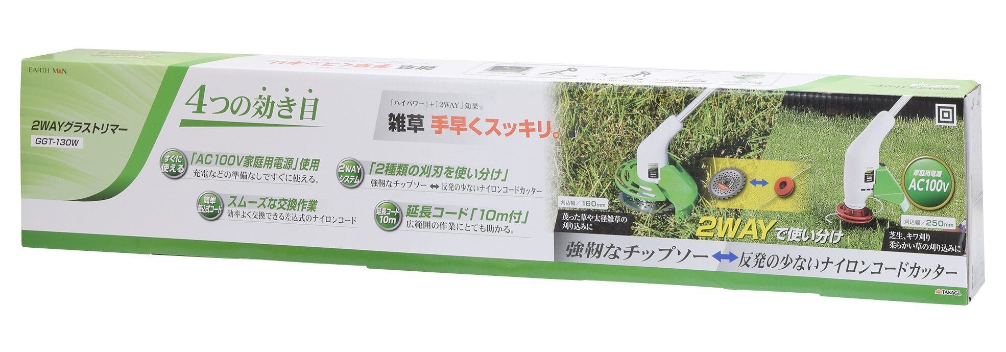 高儀(Takagi) EARTH MAN AC100V 2WAYグラストリマー GGT-130W 草刈り機【充電の必要なく、すぐに使える】草刈り機 草刈機 草刈り 替え刃 充電式 ナイロンカッター 芝刈り機 電動草刈り機 草刈り機 ナイロンコード