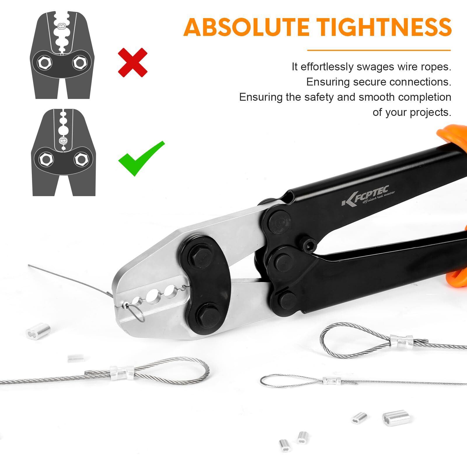 KF CPTEC ワイヤーロープ圧着工具 3/64〜1/16インチ対応|オーバル・ダブルアルミスリーブ用 圧着ペンチ|滑り止めハンドル付き 耐久構造