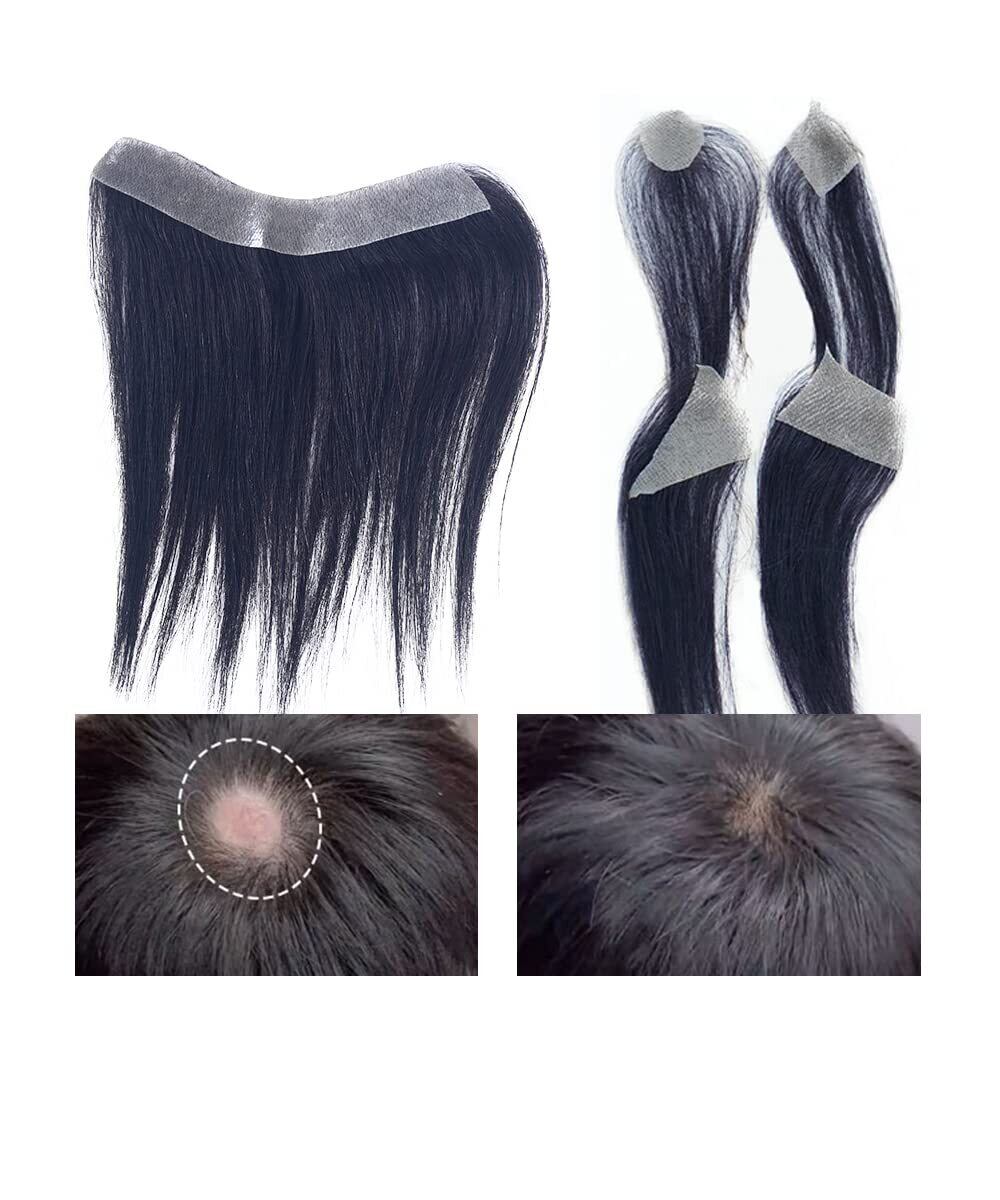 HIYE 部分ウィッグ 増毛シート 人毛100% 円形脱毛 m字 ハゲ隠し 自然 増毛 シール式 円形脱毛症隠し ウィッグ 生え際 軽い メンズ 男性用 脱毛 薄毛 ヘアピース びまん性脱毛症 人毛 貼る 付け毛 部分かつら 自然黒 ヘア 貼る増毛 髪 薄い (横15.5CMx縦2.2CM-25cm, 自然黒)