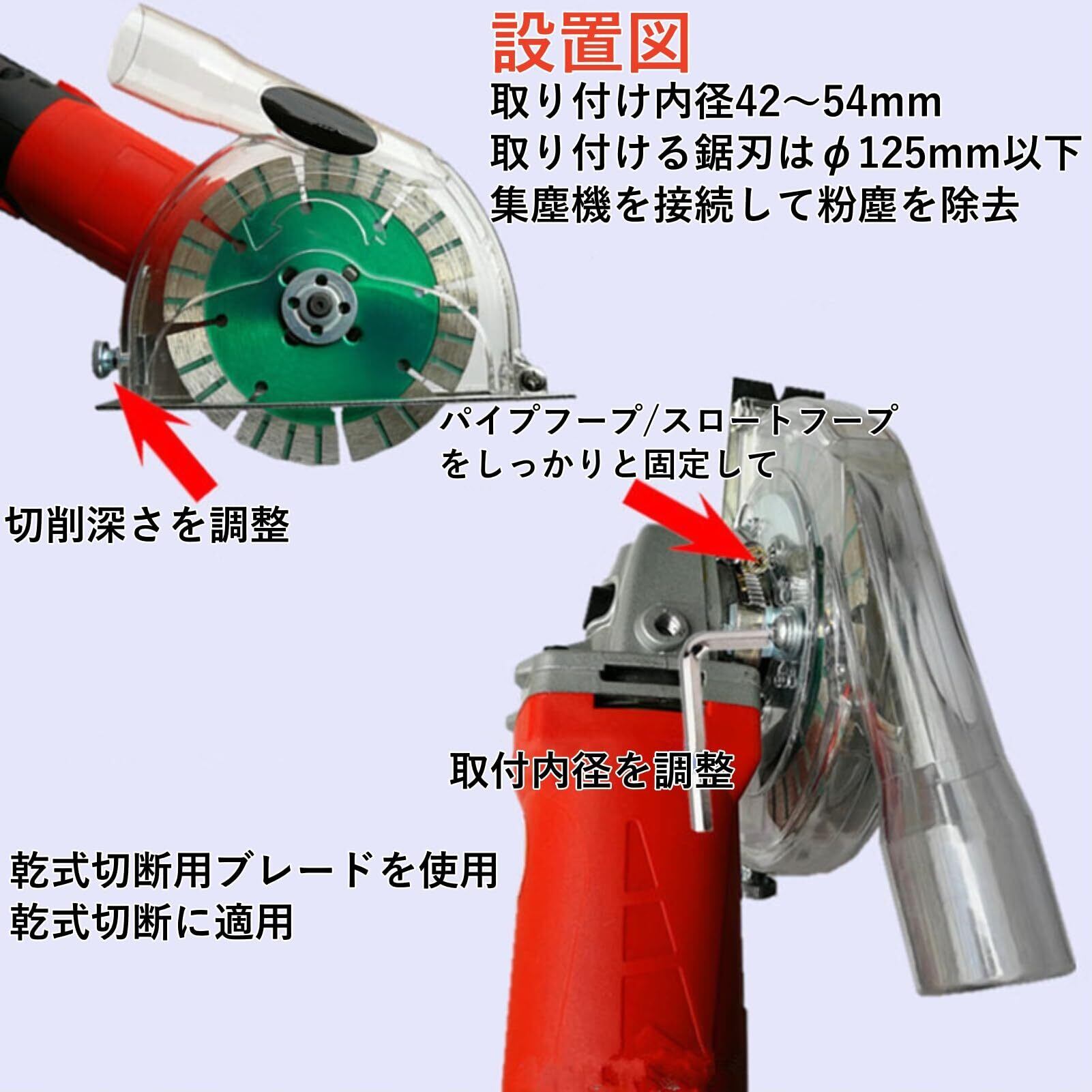 【カバーサイズ】:切断深さ:調整可能な3-27mm、切断ディスクの直径:90/115/125mm、取り付け内径:クランプ41-54mm。
