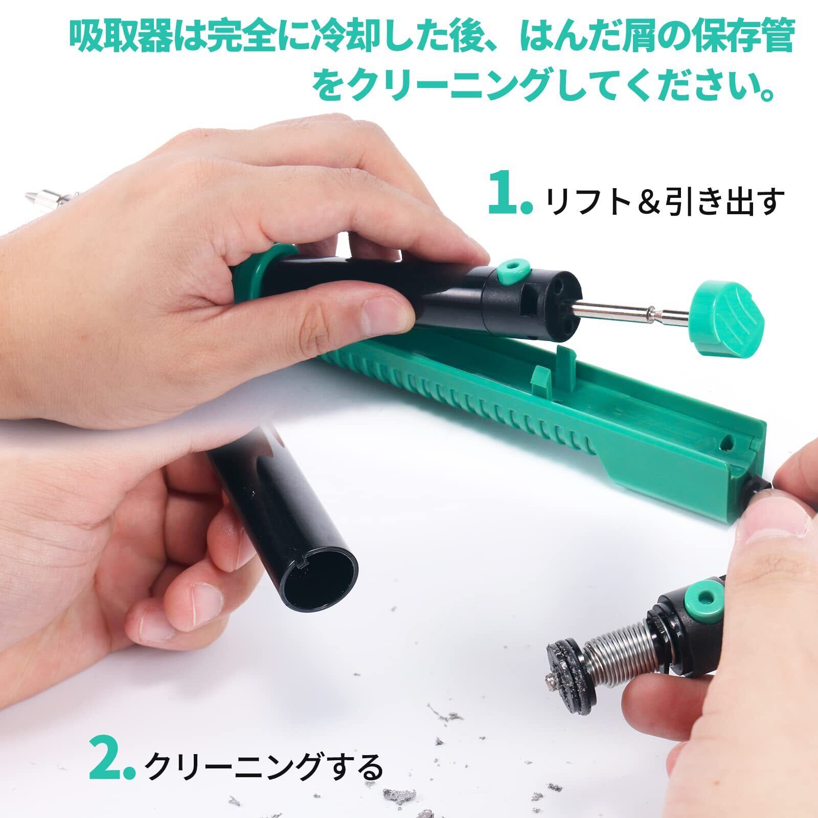 「お手入れ便利な吸取具」従来の使い捨て吸取器と異なり、929D-Vは繰り返して利用でき、清潔も便利で す。はんだ屑の保存管を引き出し、はんだ屑を軽くてキレイにお手入れできます