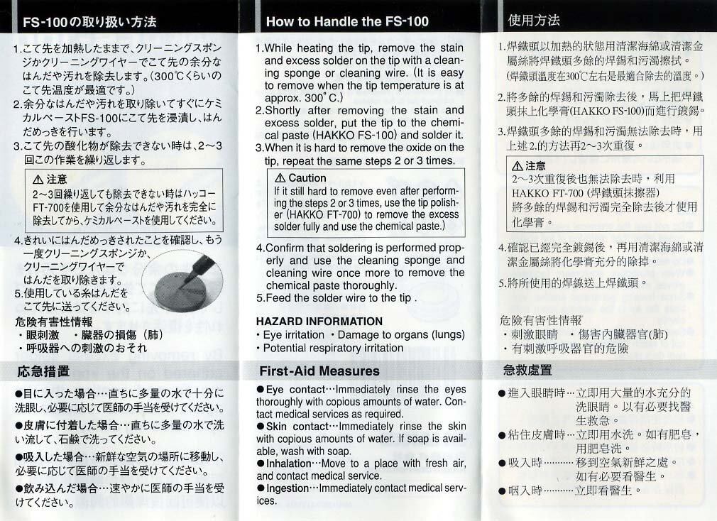 白光(HAKKO) こて先ポリッシャー ケミカルペースト FS100-01