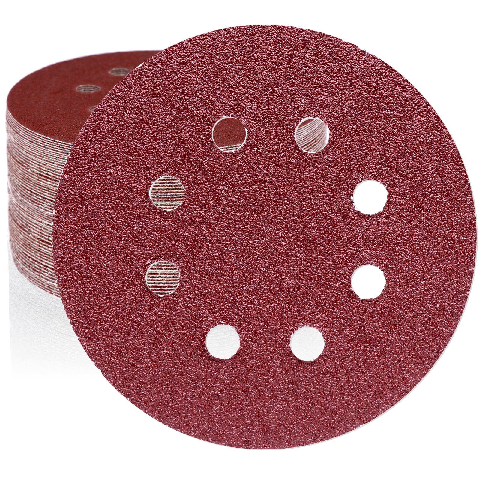 HWXINIE ディスクペーパー 125mm #40番 ランダムサンダー ペーパー 8穴 丸型 サンディングディスク マジック式,電動サンダー用サンドペーパー(50枚入)