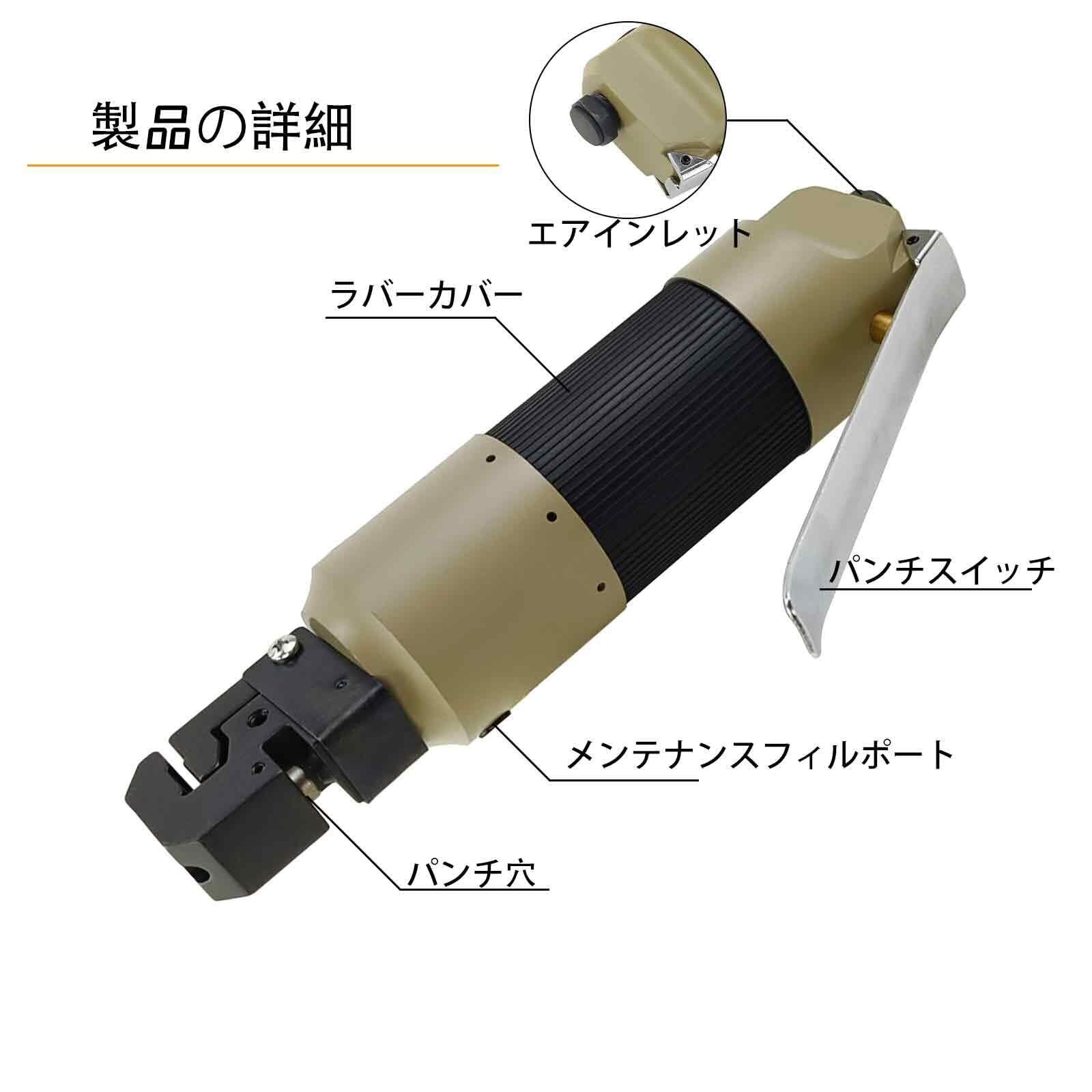 [耐久性] - 高品質のアルミニウム合金で製造され、1/4インチのエアインレット、7/8インチのパンチホールギャップ、3/16インチのパンチ直径を有しているため、長寿命の耐久性と性能をします。