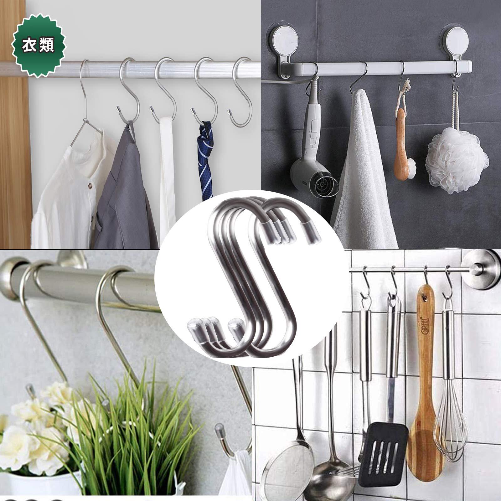 広い使用範囲:頑丈なステンレスS字フックの耐荷重は約15kg,色々な場合に活用でき、S字フックの強度が十分で変形しにくい室内に限らず室外にも活躍に使用できます、庭で植木鉢を掛けてグリル道具なども掛けます,このS字フックを使用すると大量スペースを節約できます。