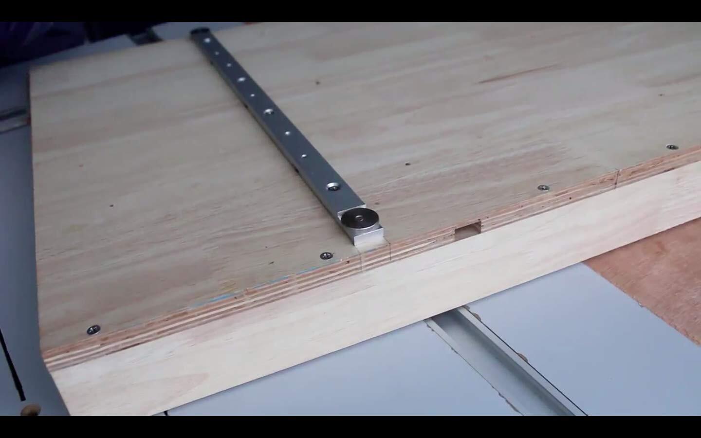 ワークプレートや自作マイターゲージなどに取り付けてから、マイタートラックに入れることもできます。
