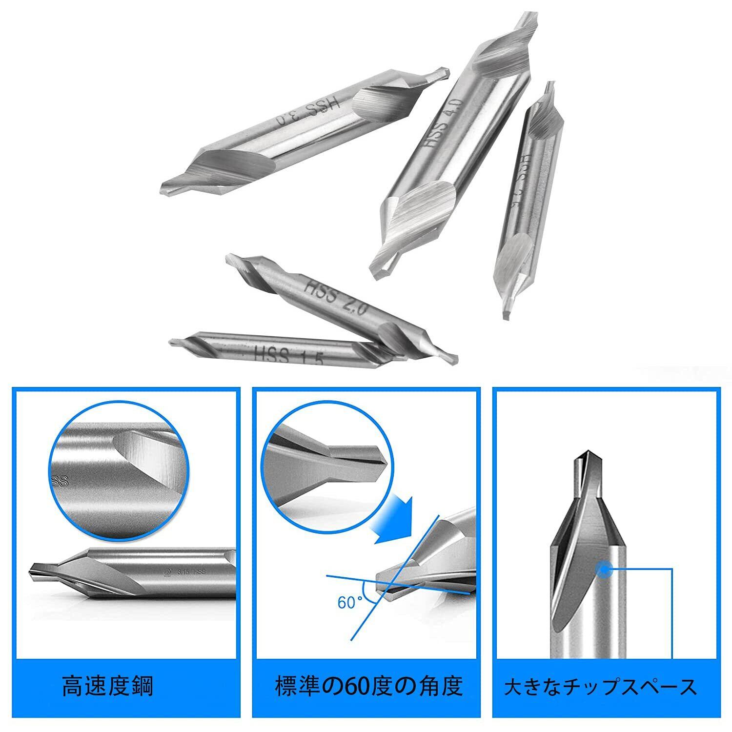 センタードリルビットは、より大きなサイズのドリルビット用の開始穴を提供するために金属加工に使用されます、各ビットにはダブルエンドがあり、標準の60度の角度で研削します。