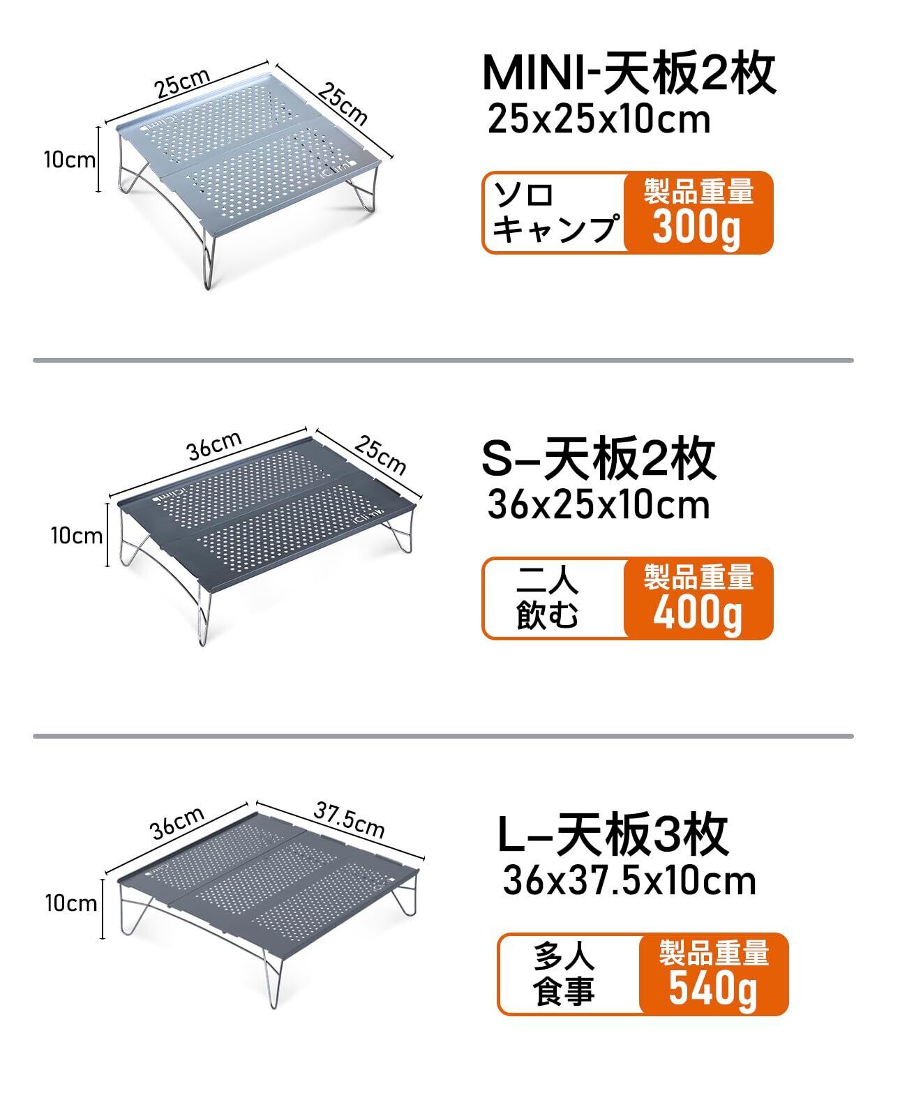 【製品仕様】サイズ:S、色:Gunmetal、天板2枚。展開サイズ:36X25X10cm、収納サイズ:40X13X2.5cm、綿製収納袋付き、製品重量:400gです。超軽量、高硬度のローテーブル、折り畳み、コンパクト、持ち運び便利、桜見、登山、徒歩、釣り、花火、バイク等様々アウトドア、キャンプシーンに最適です。