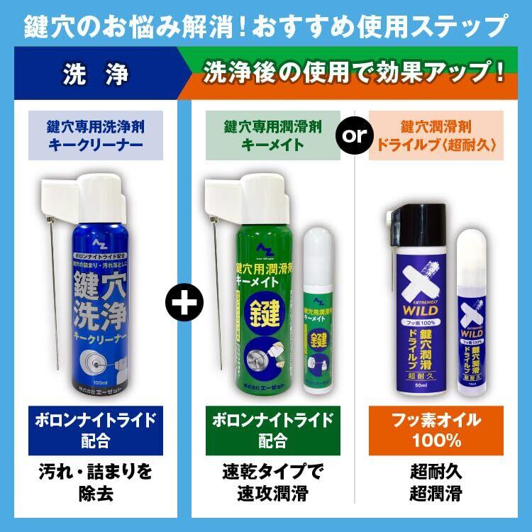 AZ 鍵穴用洗浄剤 キークリーナー ノズルが折りたためて便利な2wayキャップ 100ml