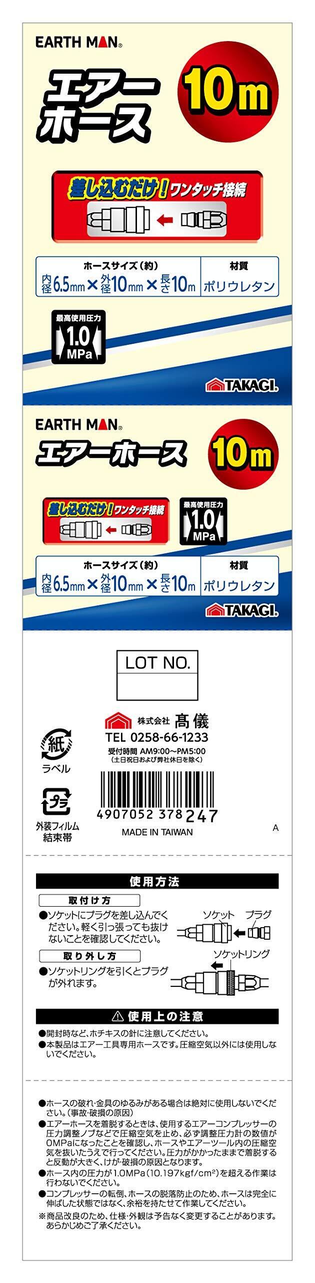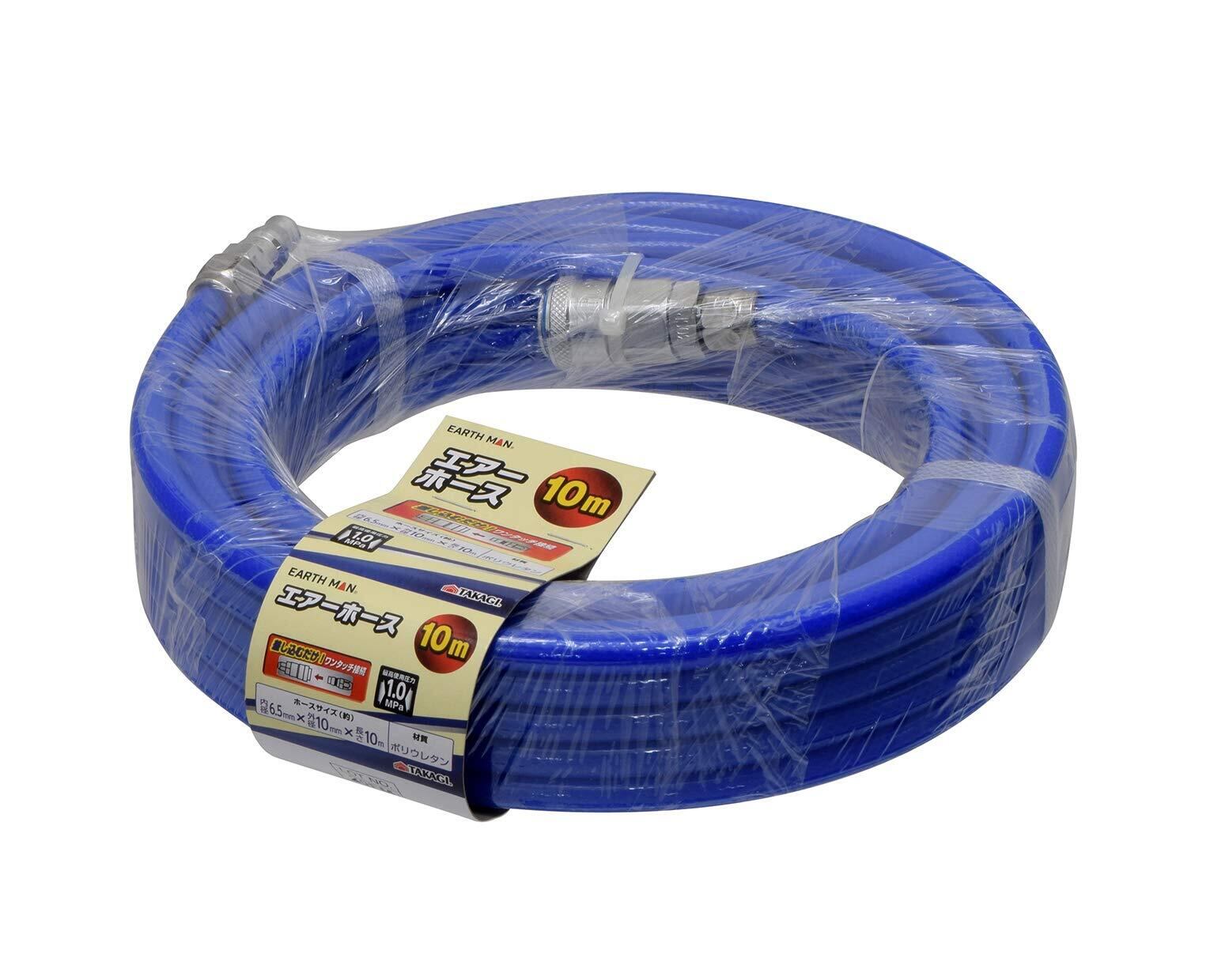 高儀(Takagi) EARTH MAN ポリウレタン エアーホース 10m 青 【差し込むだけのワンタッチ接続】【使用最高圧力:1.0MPa 】