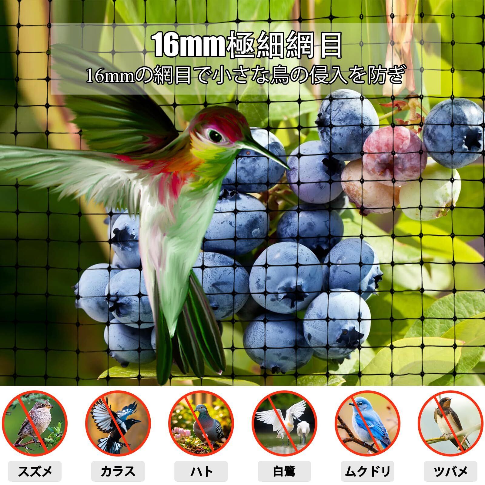 防鳥ネット 黒 ぼうちょうネット 幅4m×縦10m 大判 16mm極細網目 鳥害対策 防鳥網 鳥よけ 防鳥グッズ ナイロン材 目が細かい 目立たない 結束バンド付 園芸用ネット 農作物/畑/果樹園/果物 田畑 ゴミ置き場 鳥・家畜侵入 対策