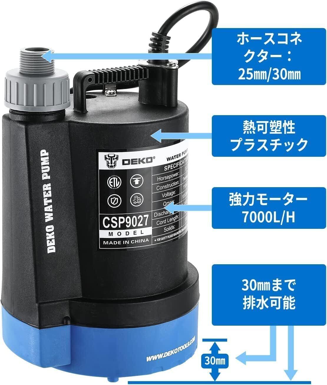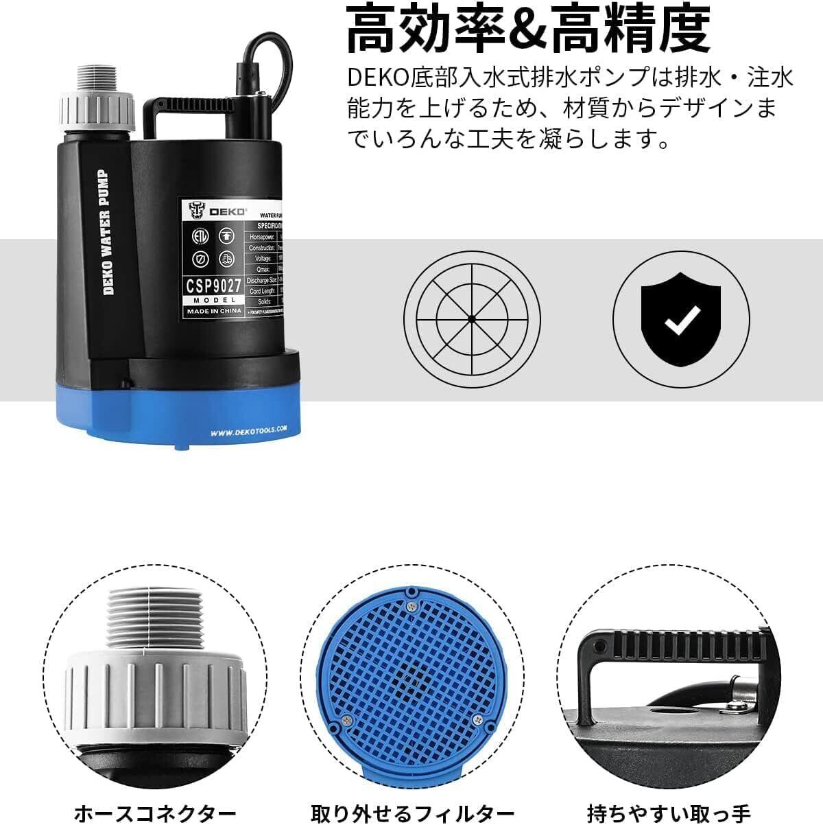 DEKOPRO 水中ポンプ 1/4HP 底部入水式 循環ポンプ 50・60HZ通用 最大吐出量7000L/H 揚程8M 汚水 清水用 ガーデン 水耕栽培 水族館給水 排水 ポンプ