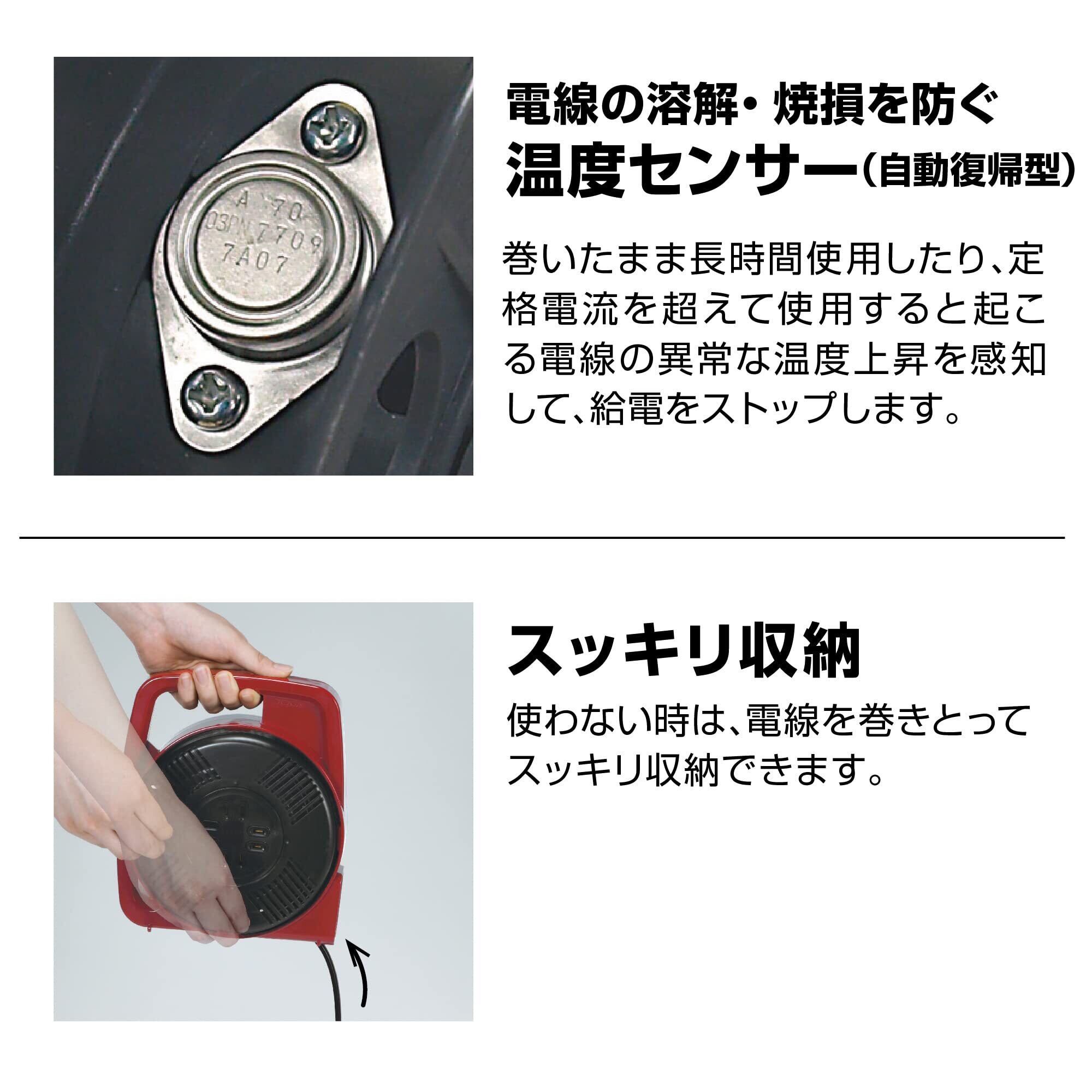 ハタヤ (HATAYA) コードリール 屋内用 ホームリール 100V型 手動巻 5m 温度センサー内蔵 (電線溶解防止機能) コンセント2個 コンパクト 家庭用 ギフト用 マックリール MS-5-R レッド