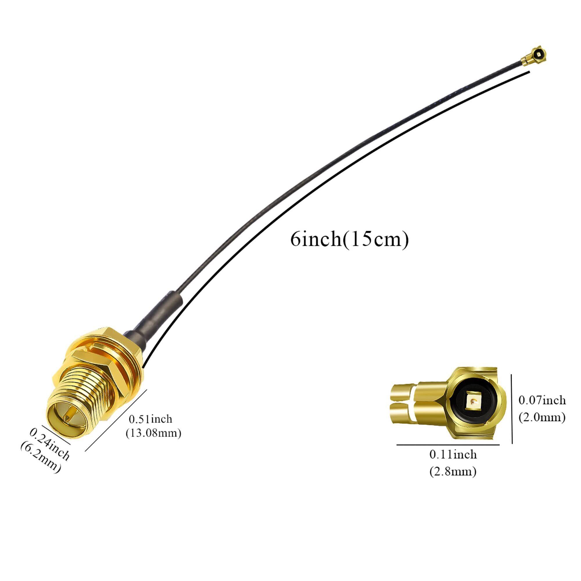 パッケージ内容: 6インチ 0.81mm RP-SMA メスから UFL/U.FL/IPX/MHF4 同軸ケーブル 5 本 (コネクタ 1: RP-SMA メス コネクタ、コネクタ 2: IPX コネクタ、ケーブル タイプ: 6インチ 0.81mm 同軸ケーブル)